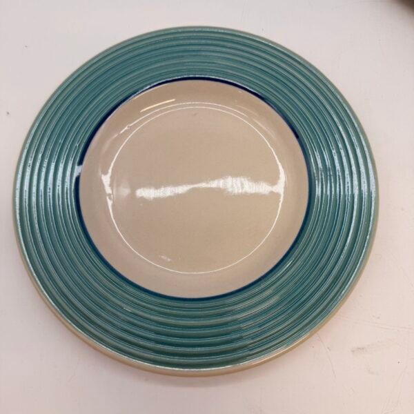 Gibson Housewares Set of 4 Dinner Plates Green Ribbed Rim Stoneware