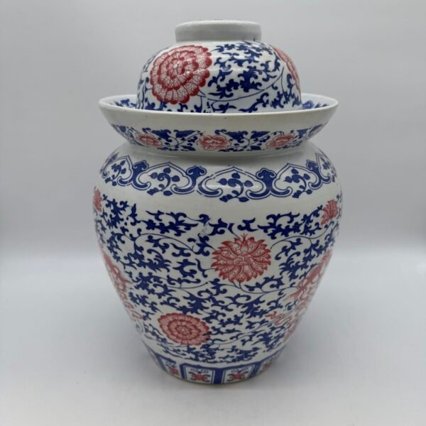Vintage Chinese Jingdezhen Lidded Ginger / Pickle Jar – Blue Red – 1980s