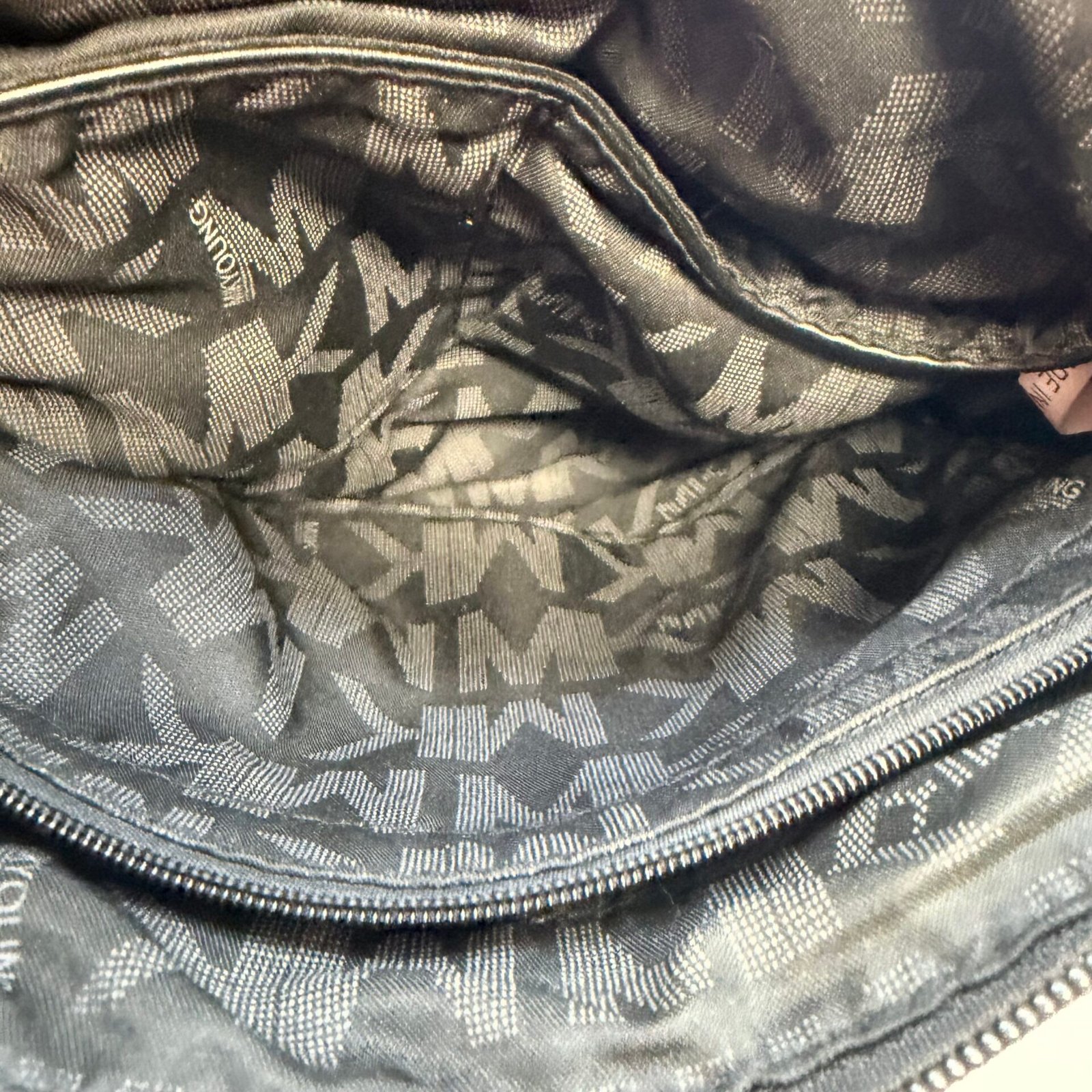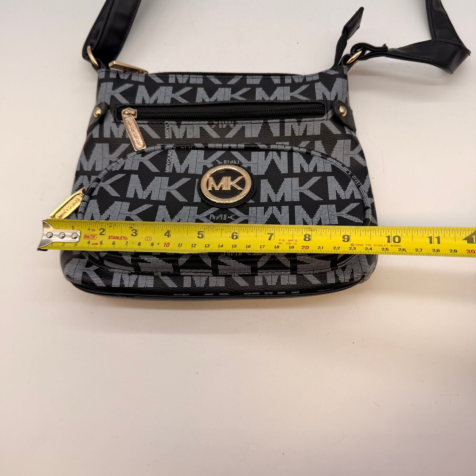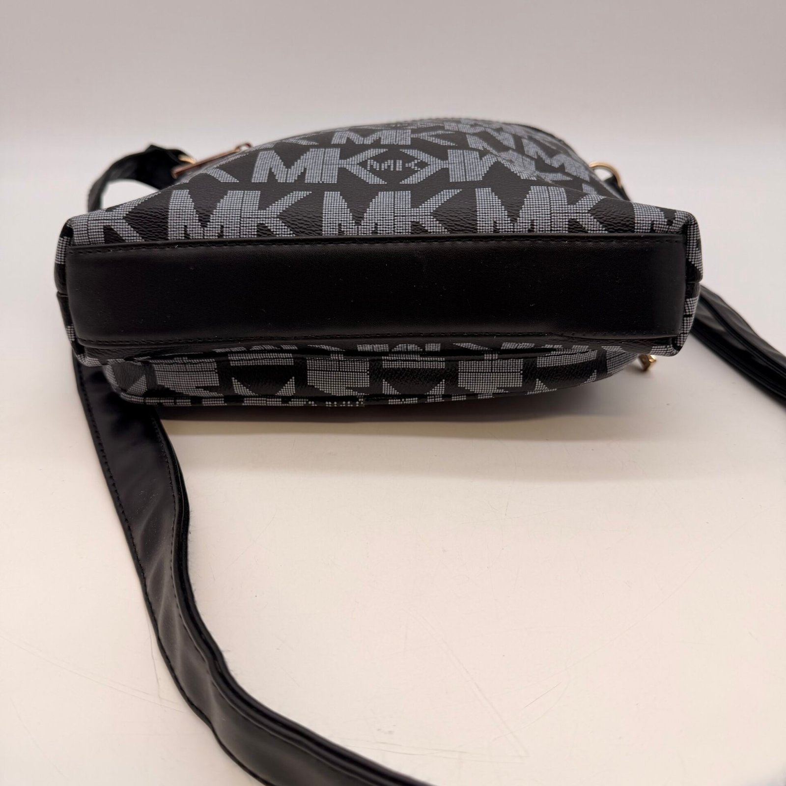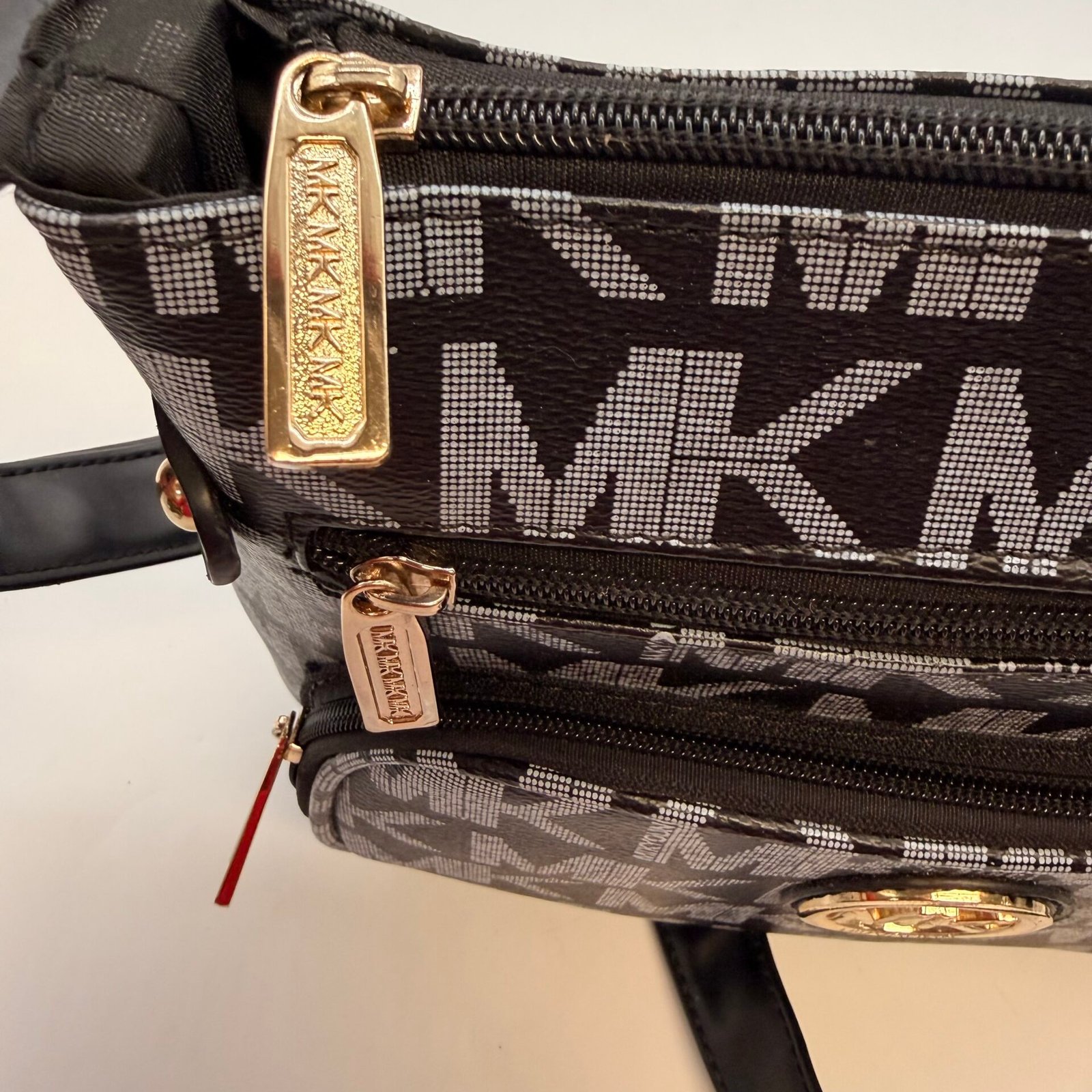 Elegant MKYOUNG crossbody shoulder bag featuring a stylish black and grey MK logo pattern.