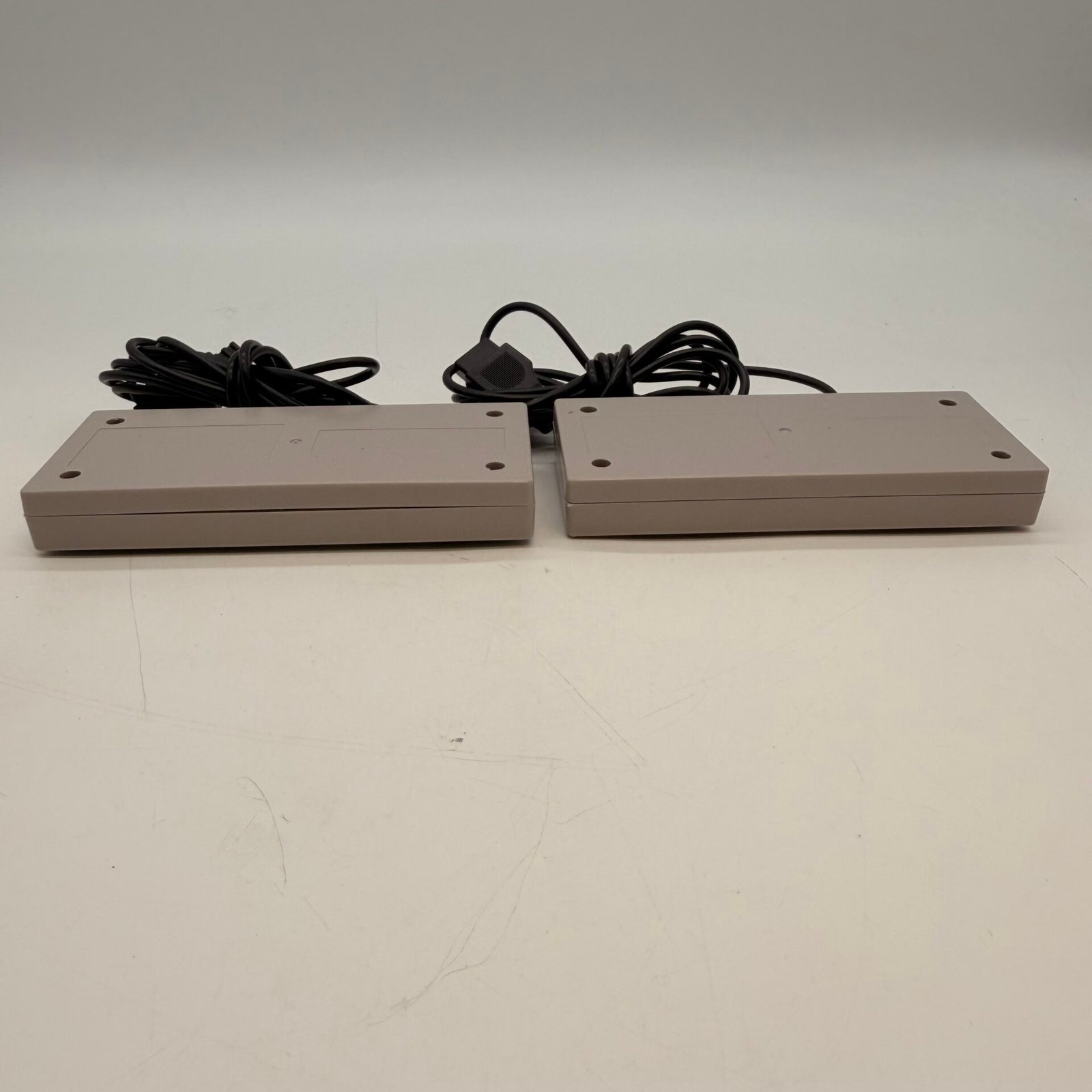 Both controllers include long wired cables and appear clean with normal light cosmetic wear from use.