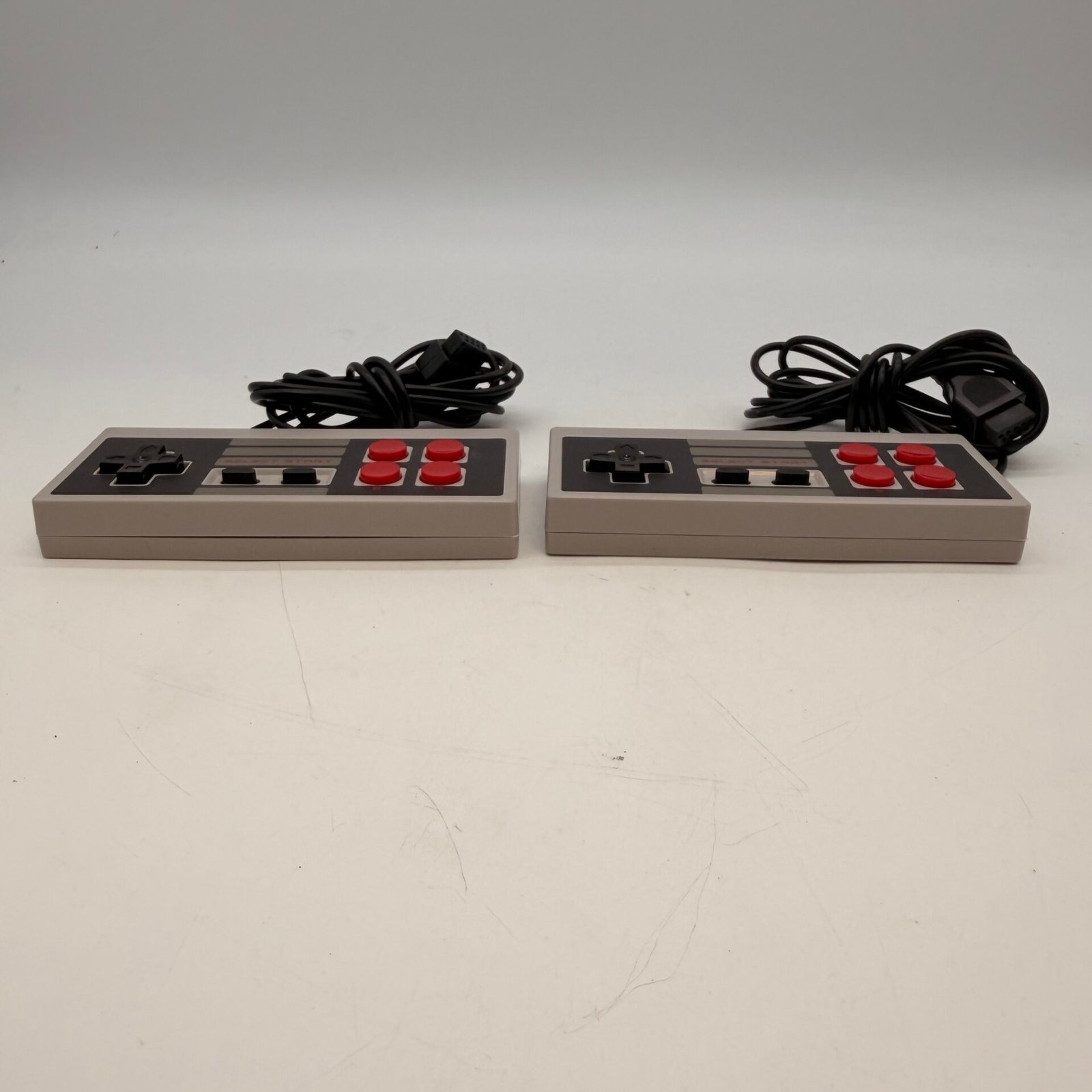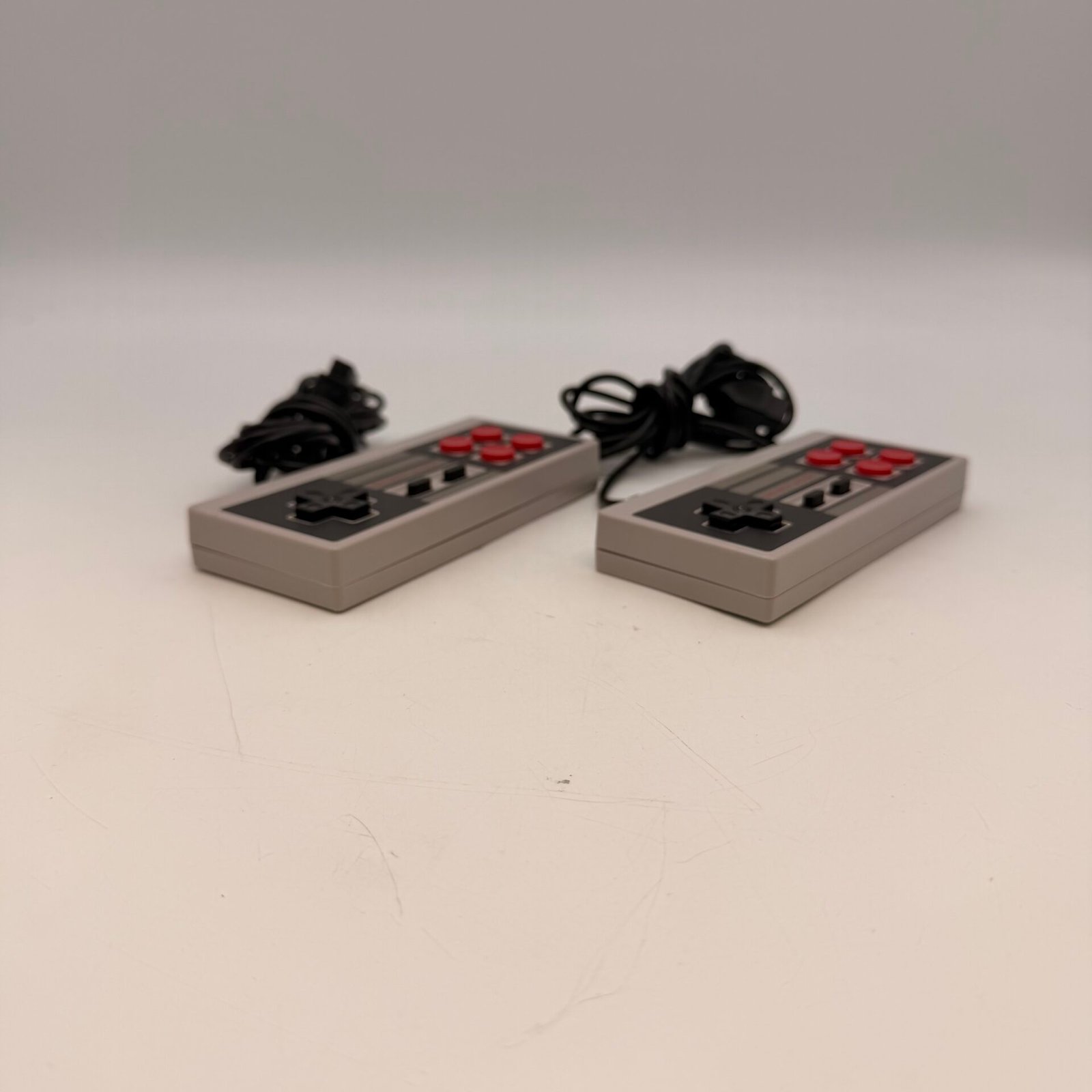 Set of 2 classic NES-style wired controllers in good pre-owned condition.