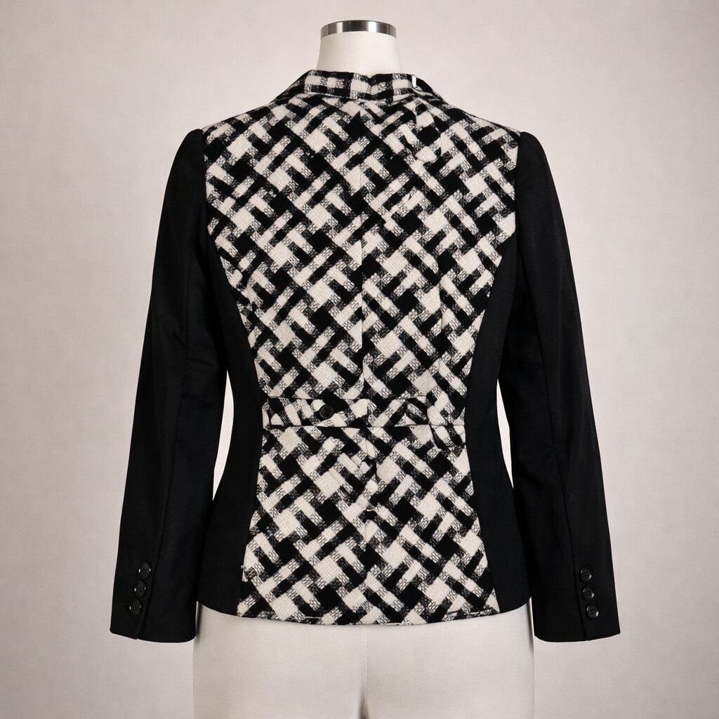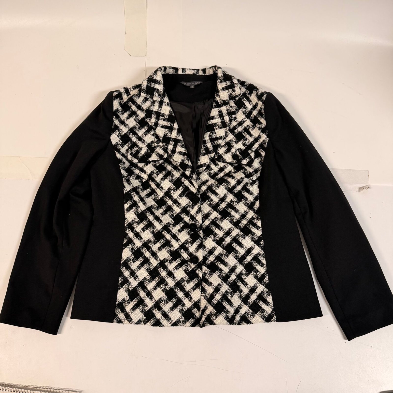 Addition Elle Blazer Womens Size 16 Black White Jacket Button Front