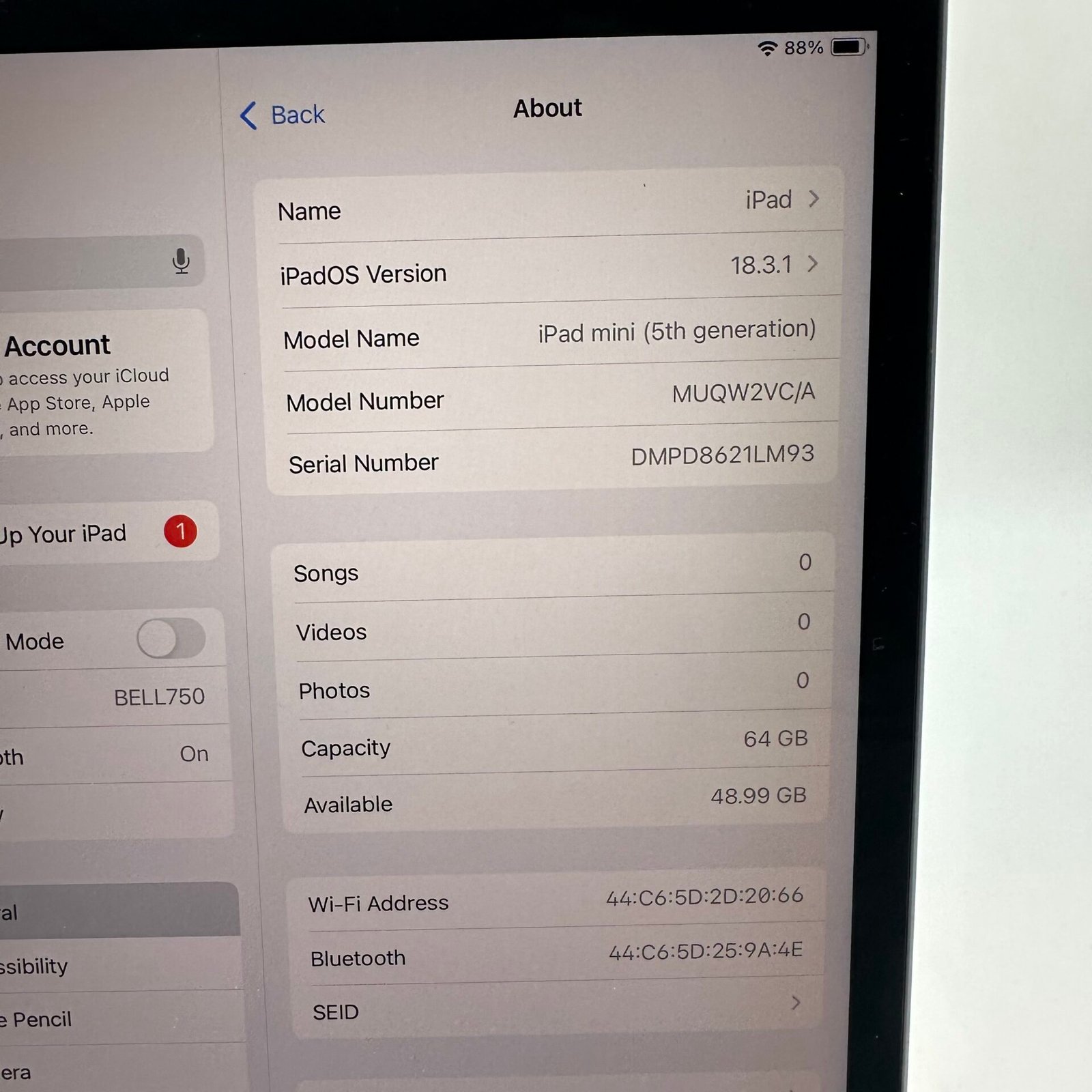 • Model: iPad mini 5 (5th Generation)