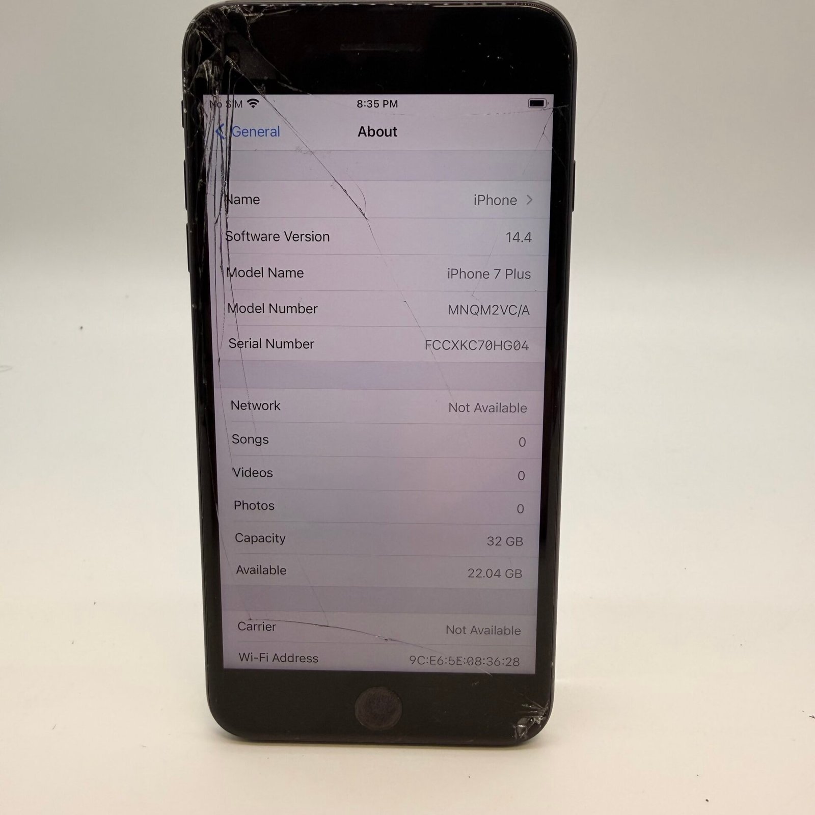 Apple iPhone 7 Plus 32GB Black Unlocked 91% Battery Cracked Screen A1784