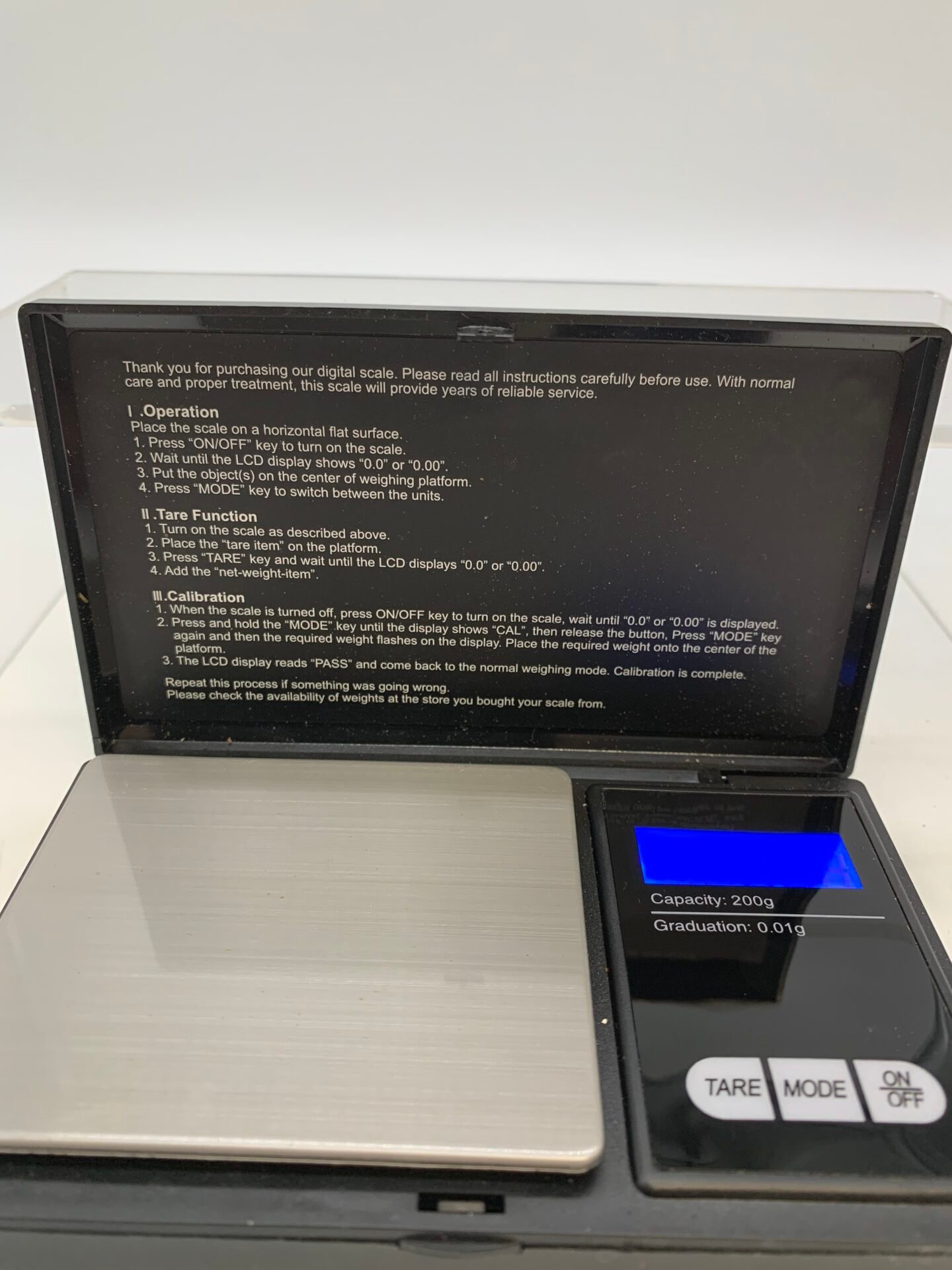 ✔ Graduation / Readability: 0.01g