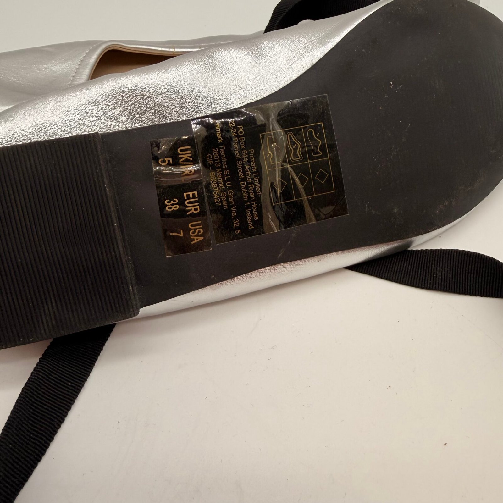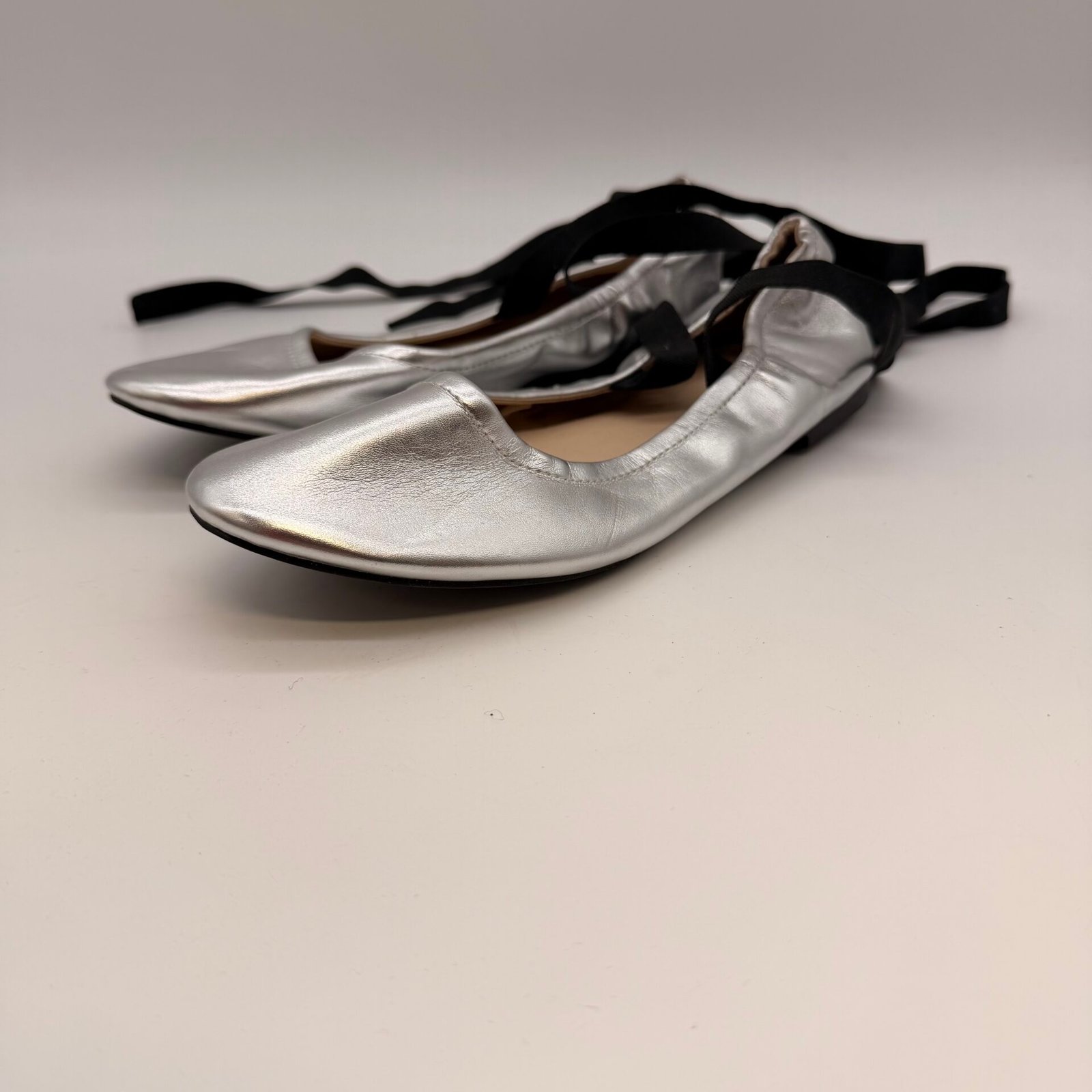 Atmosphere Silver Ballet Flats Lace Up Size 7 EU 38