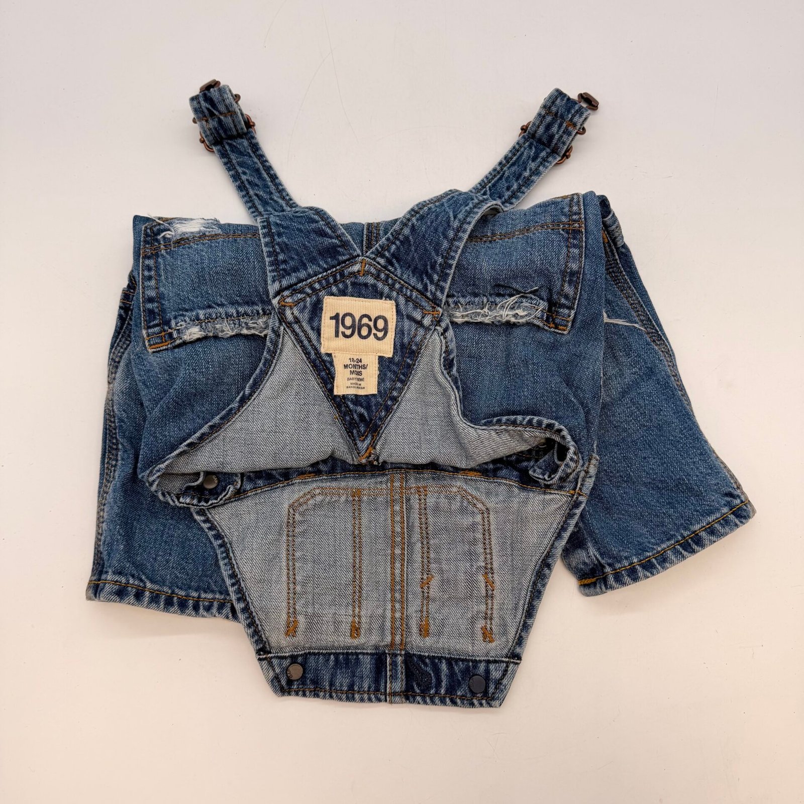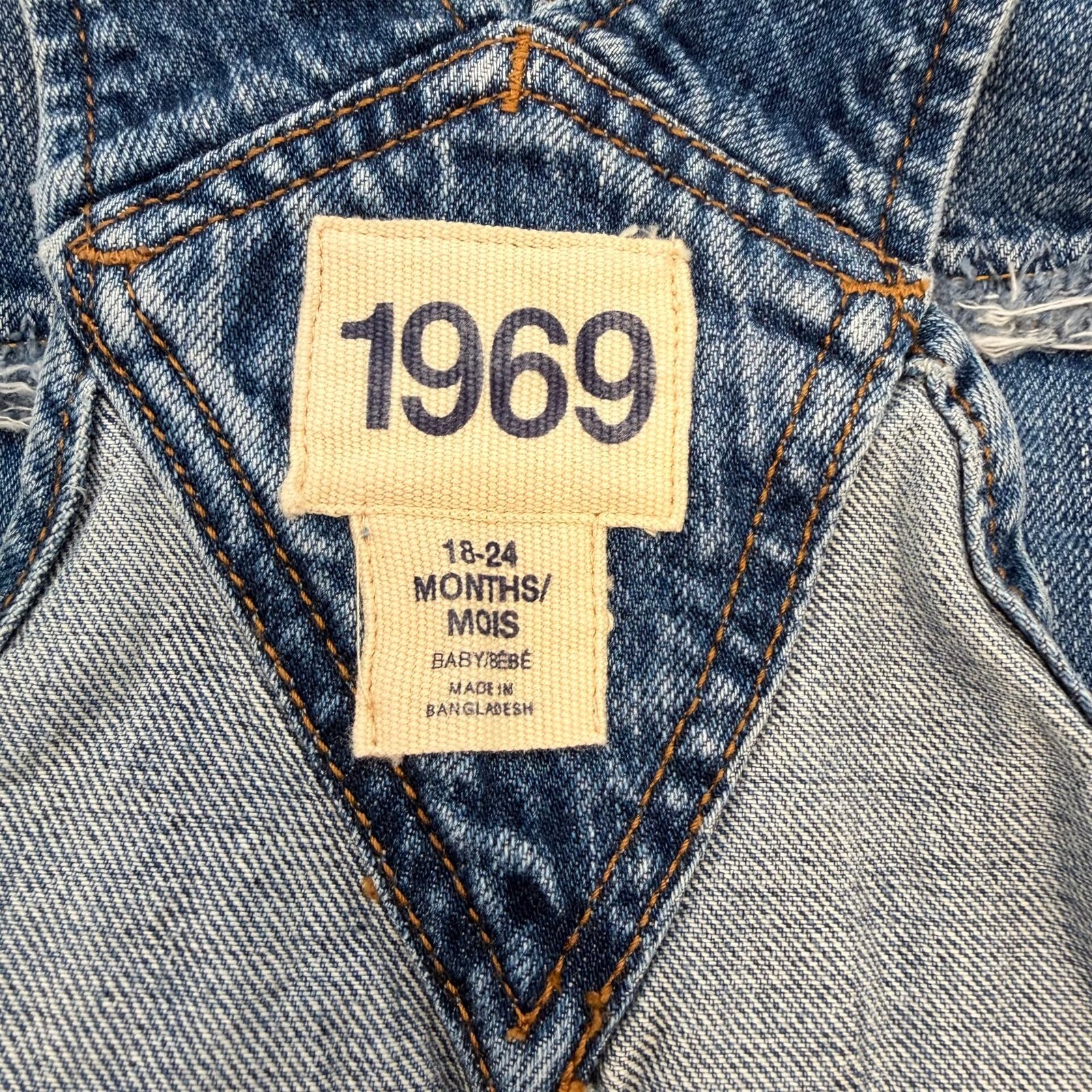 Baby Gap 1969 Denim Overalls 18-24 Months Distressed Jean Bib Romper Toddler