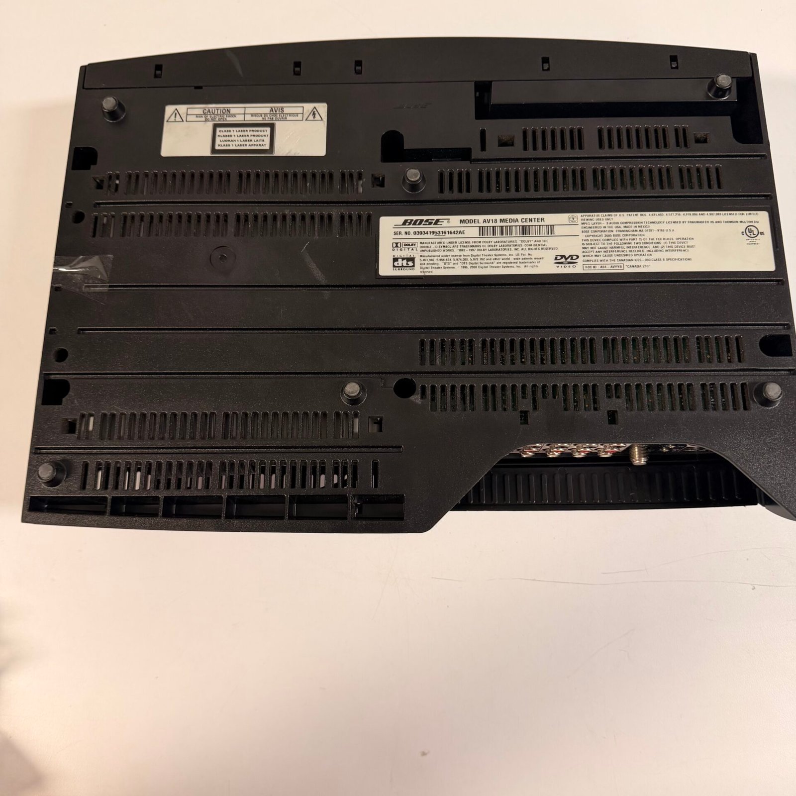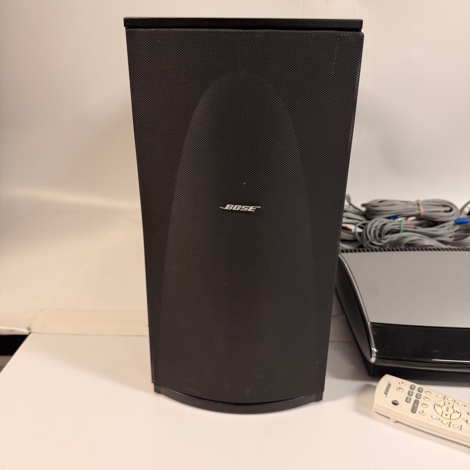 This listing is for a Bose Lifestyle 18 Complete Set home theater system. The system has been fully tested and is in working condition. Includes the AV18 media center, PS18 II powered subwoofer, cube speakers, remote, and original wiring.