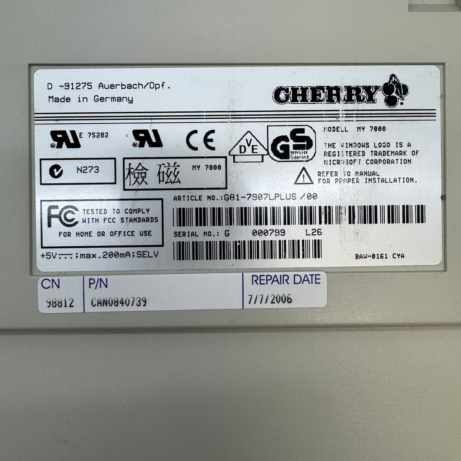 Cherry MY 7000 Vintage Mechanical Keyboard Made in Germany Good condition