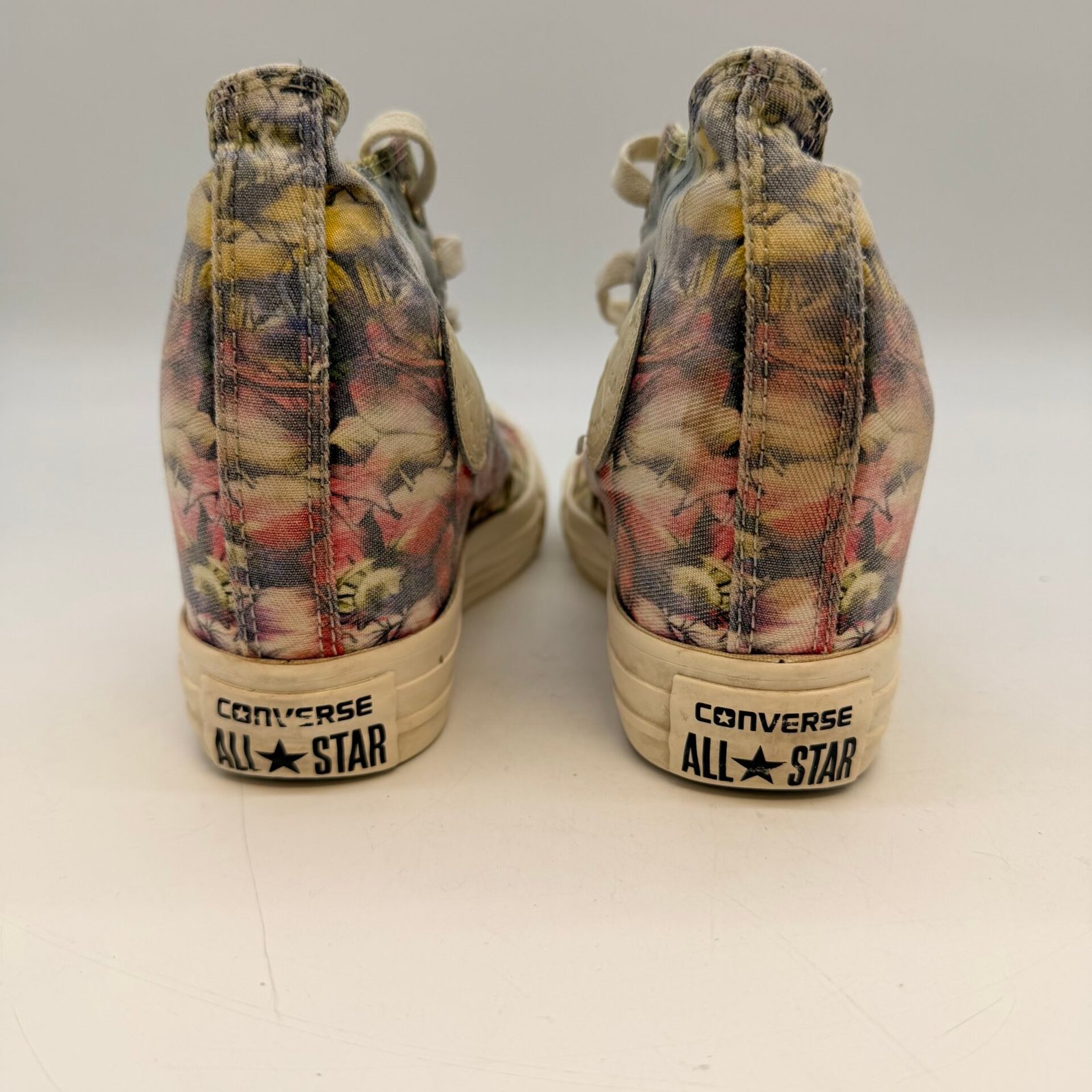 Authentic Converse Chuck Taylor All Star floral high-top sneakers with internal hidden wedge.