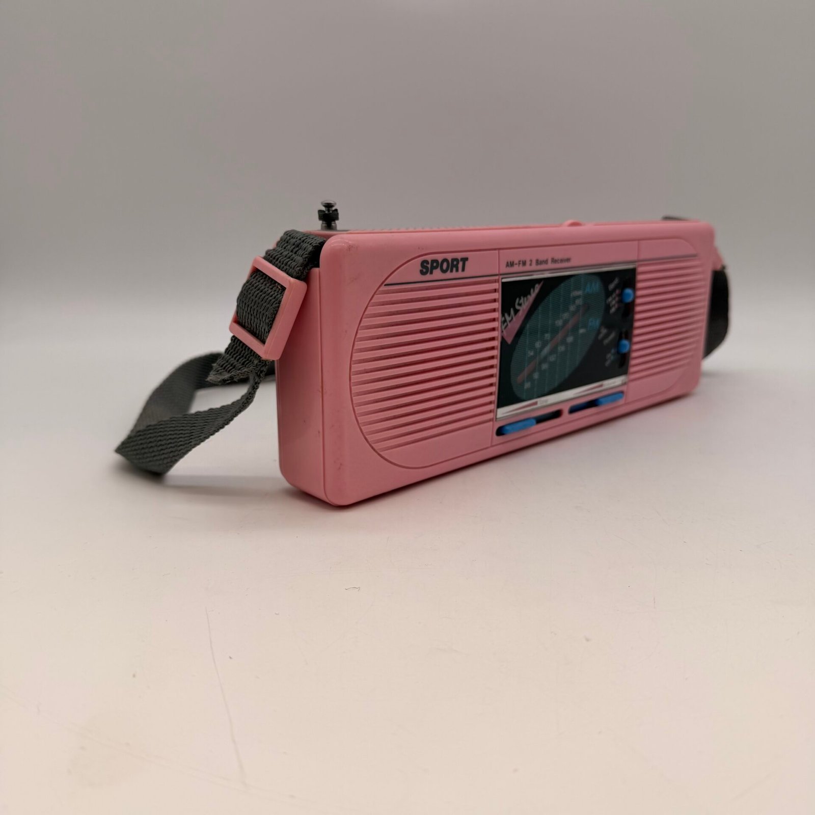 Vintage Curtis RS30 portable AM/FM radio in pink.