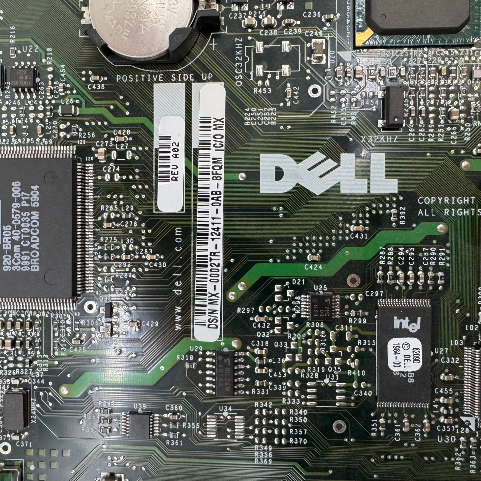 Original Dell MX-0002TR motherboard removed from a vintage system.