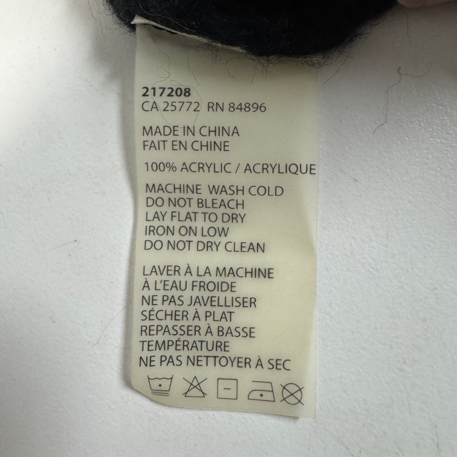 Machine wash cold, do not bleach, lay flat to dry, iron low, do not dry clean.