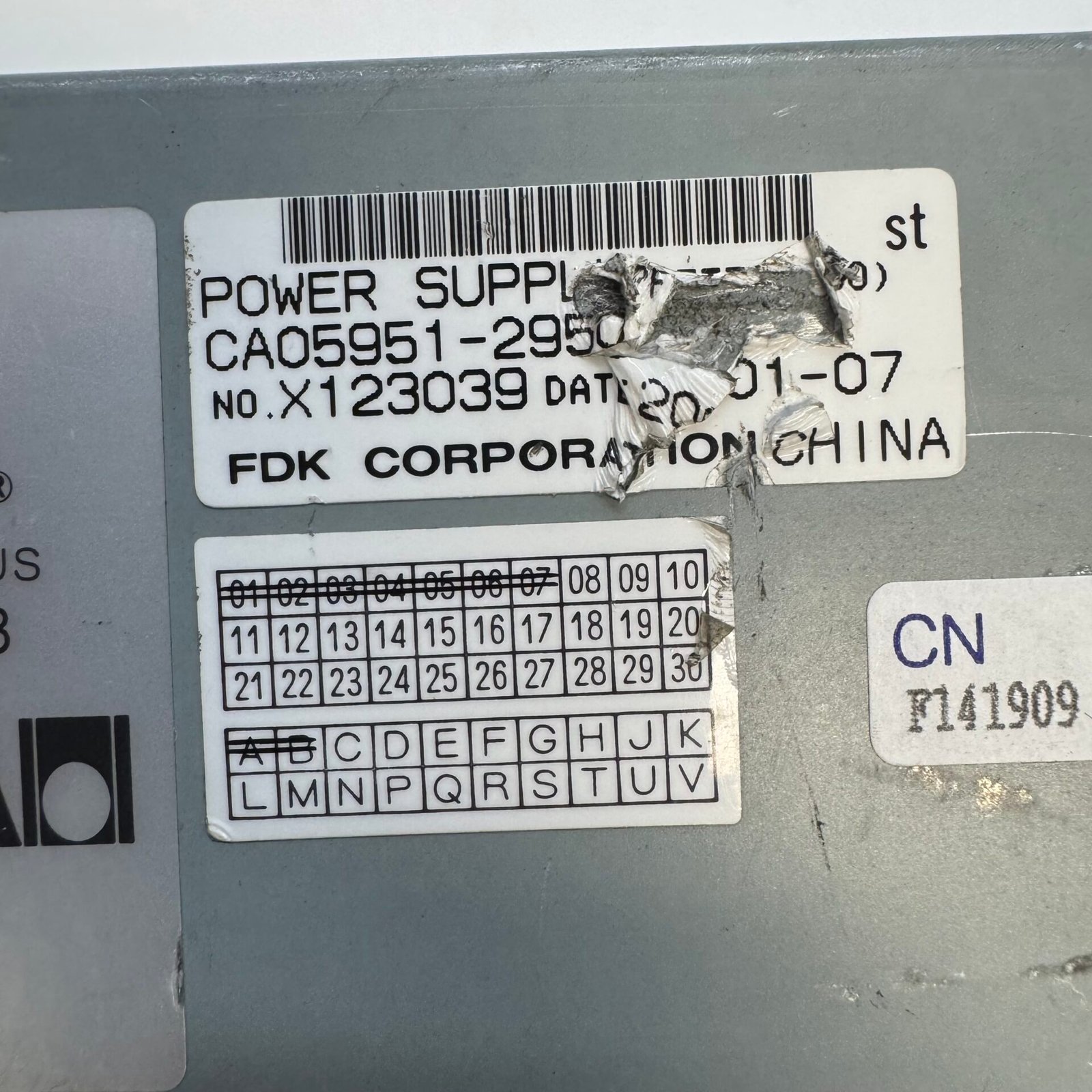 Used FDK Corporation industrial power supply, model CA05951-2950. This unit is pulled from a working environment and shows normal signs of use such as scratches and wear on the casing. Fully inspected visually.