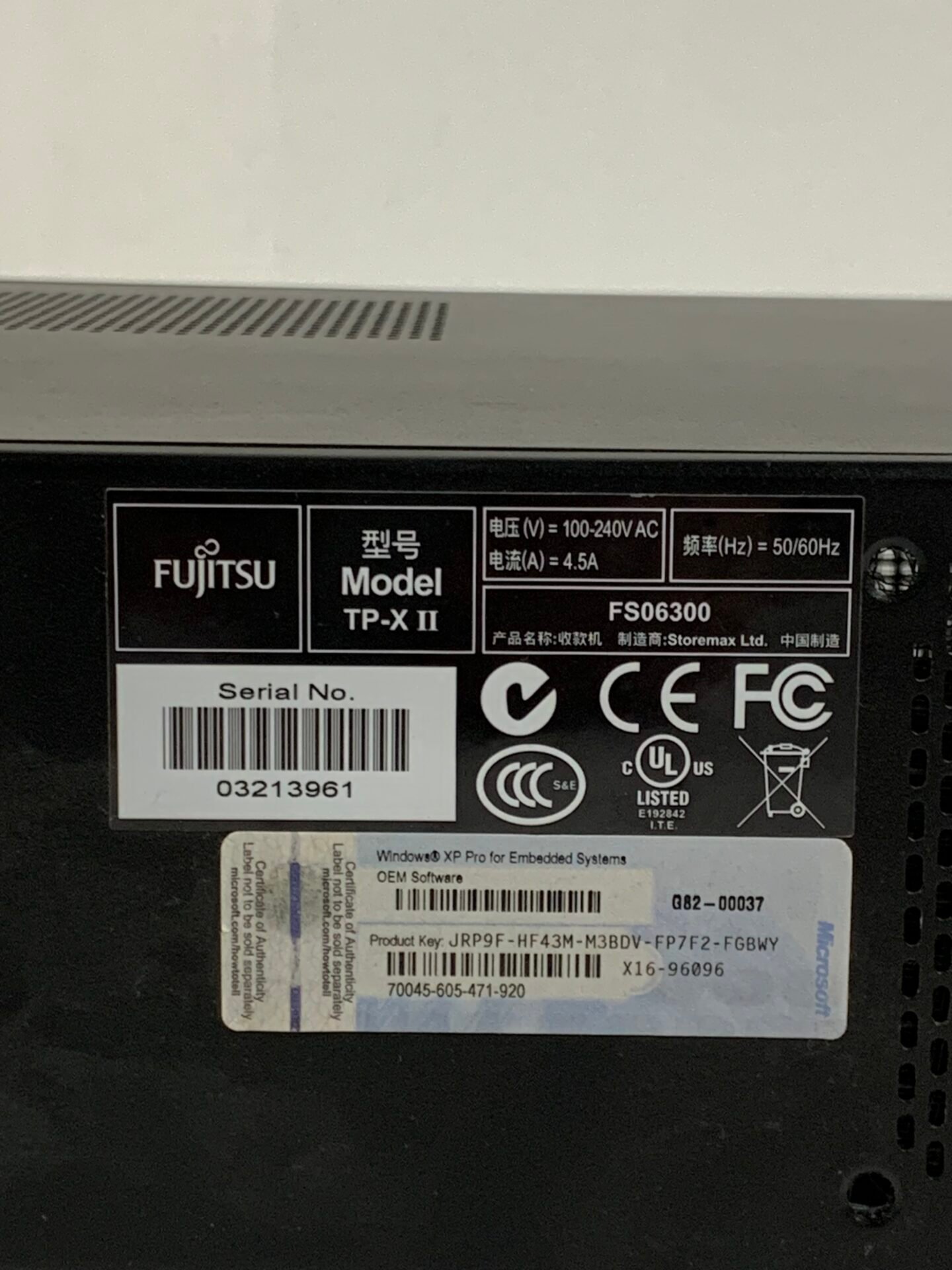 This listing is for a Fujitsu TP-X II POS desktop computer chassis (empty case only).