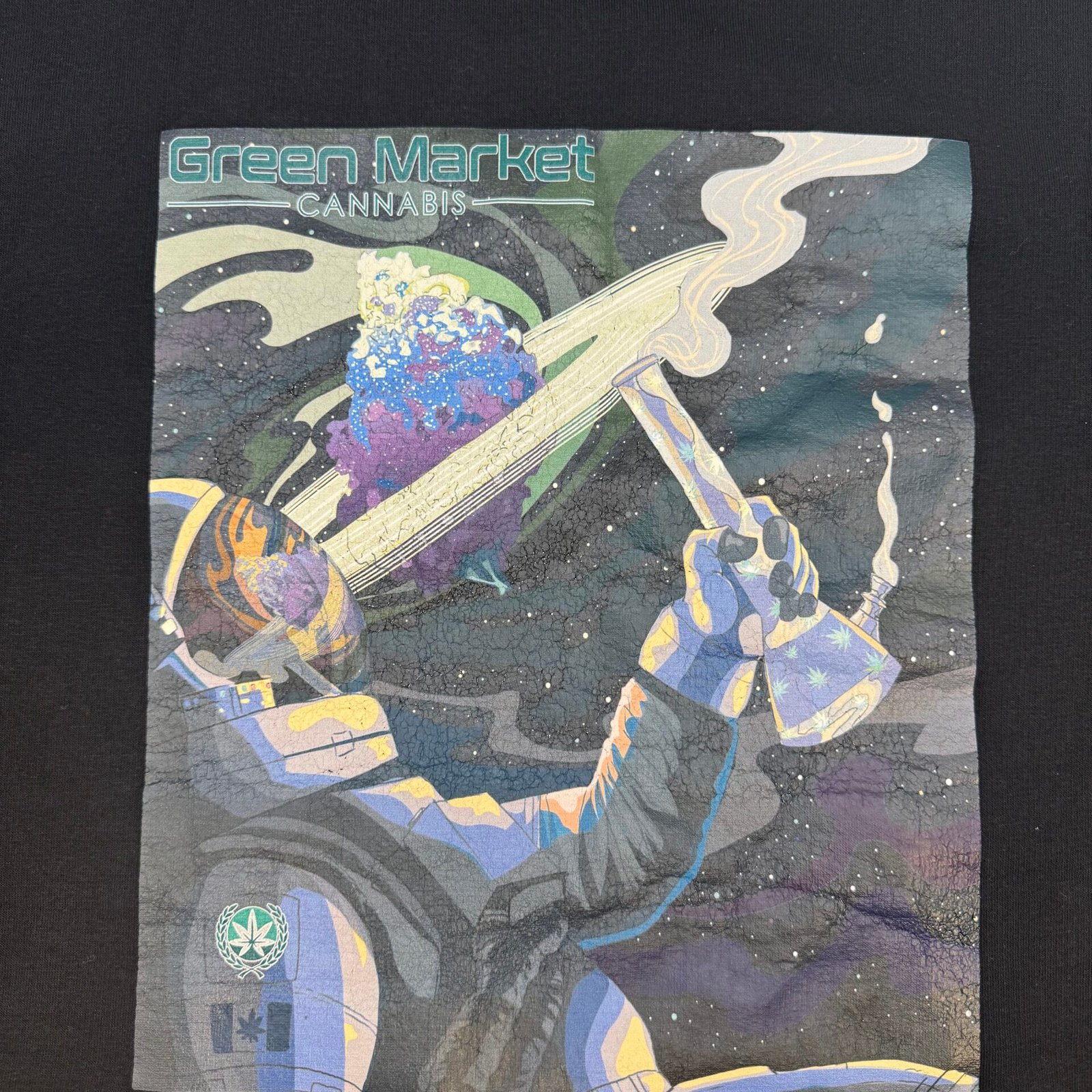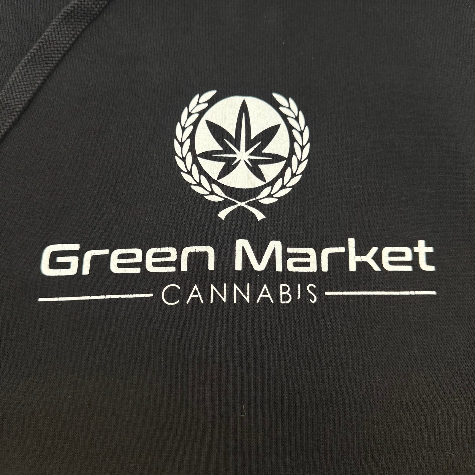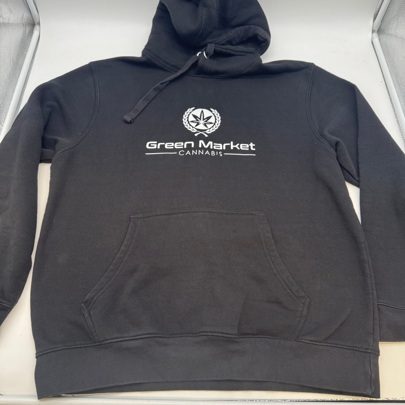 Green Market Cannabis Black Hoodie Men’s Size L Graphic Print