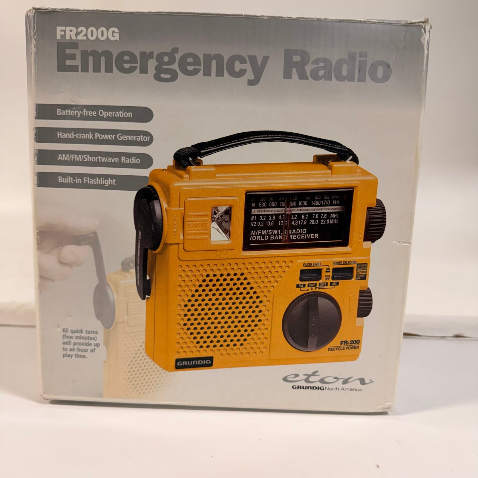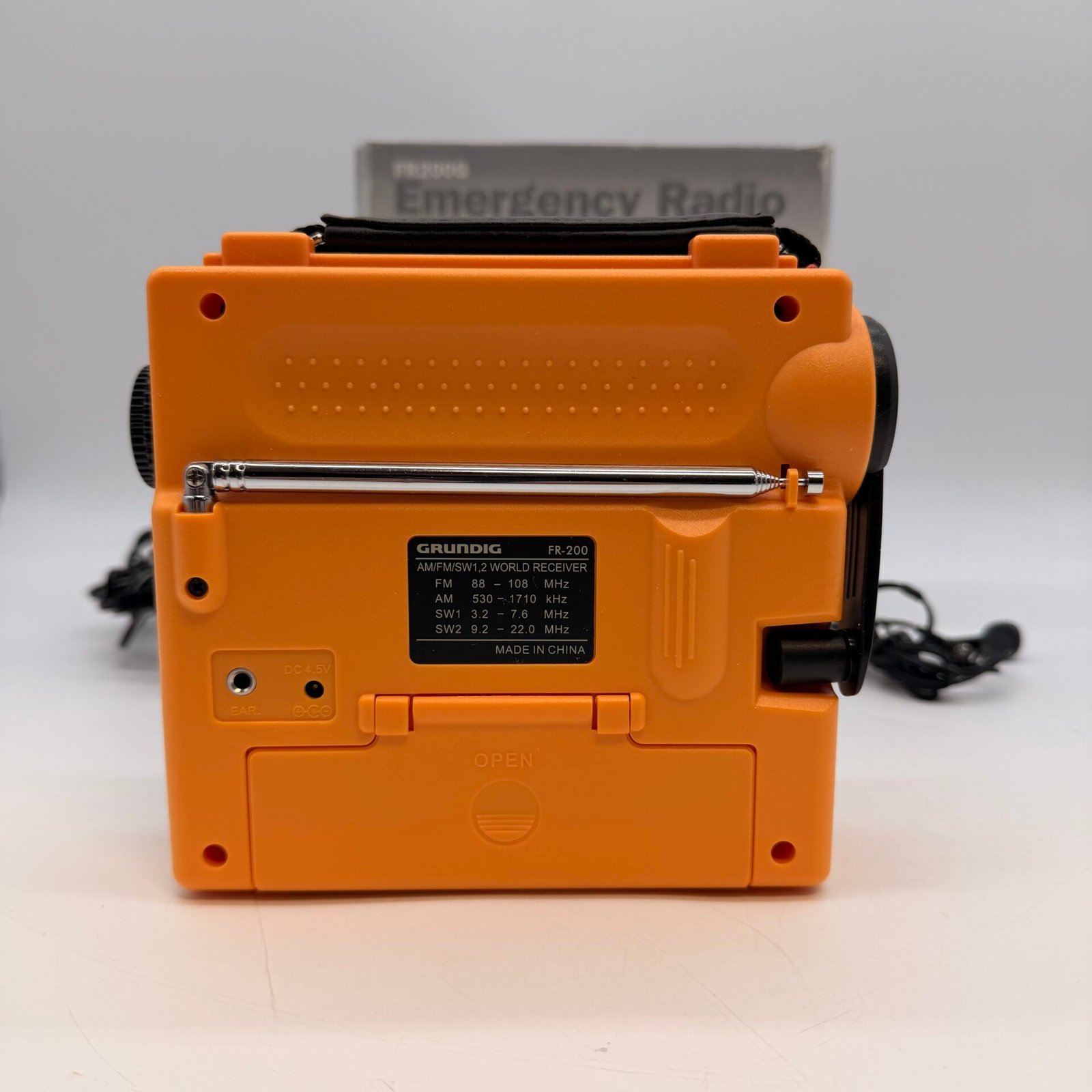 Grundig FR-200 emergency world band radio in brand new open-box condition.