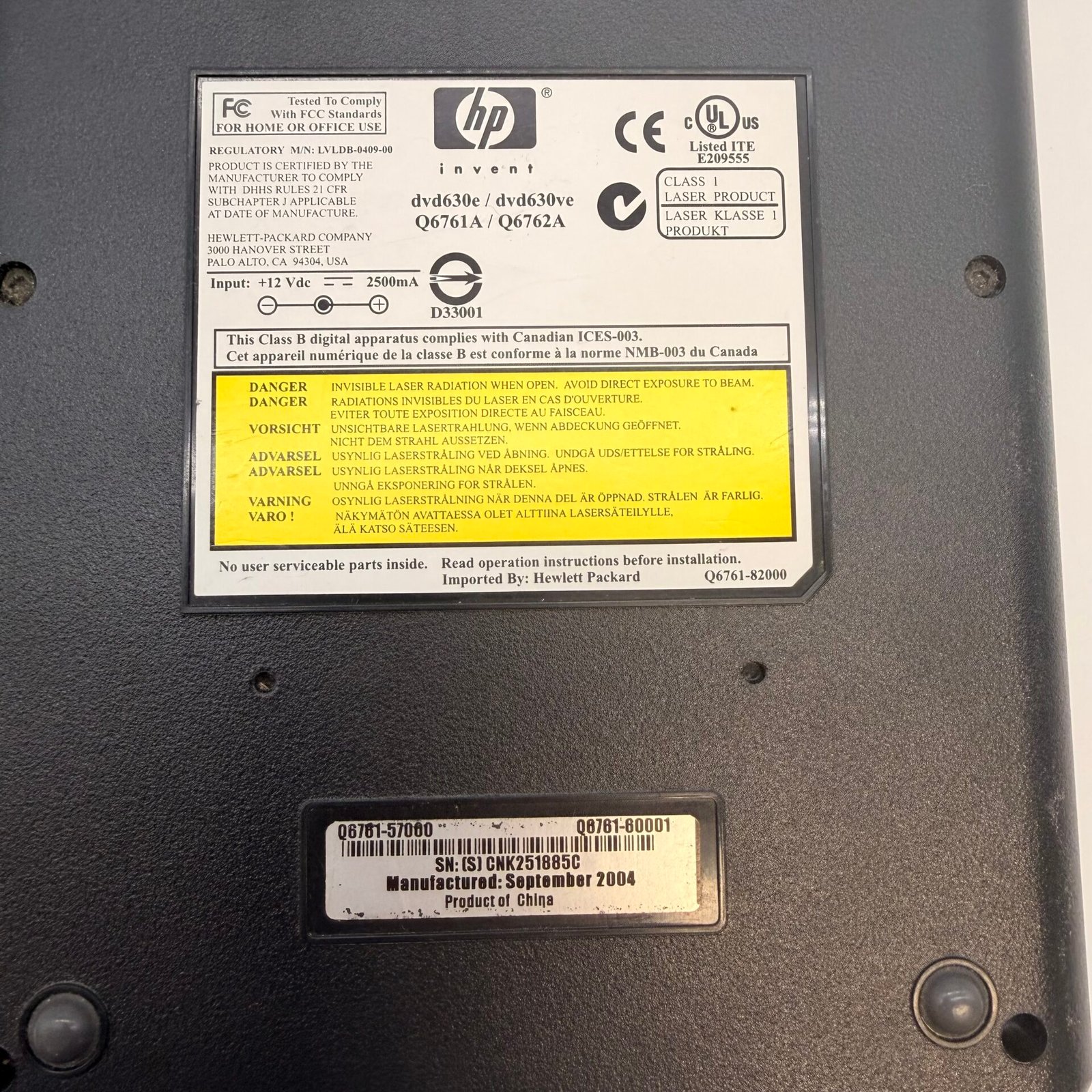 HP external DVD writer model dvd630e in good working condition.