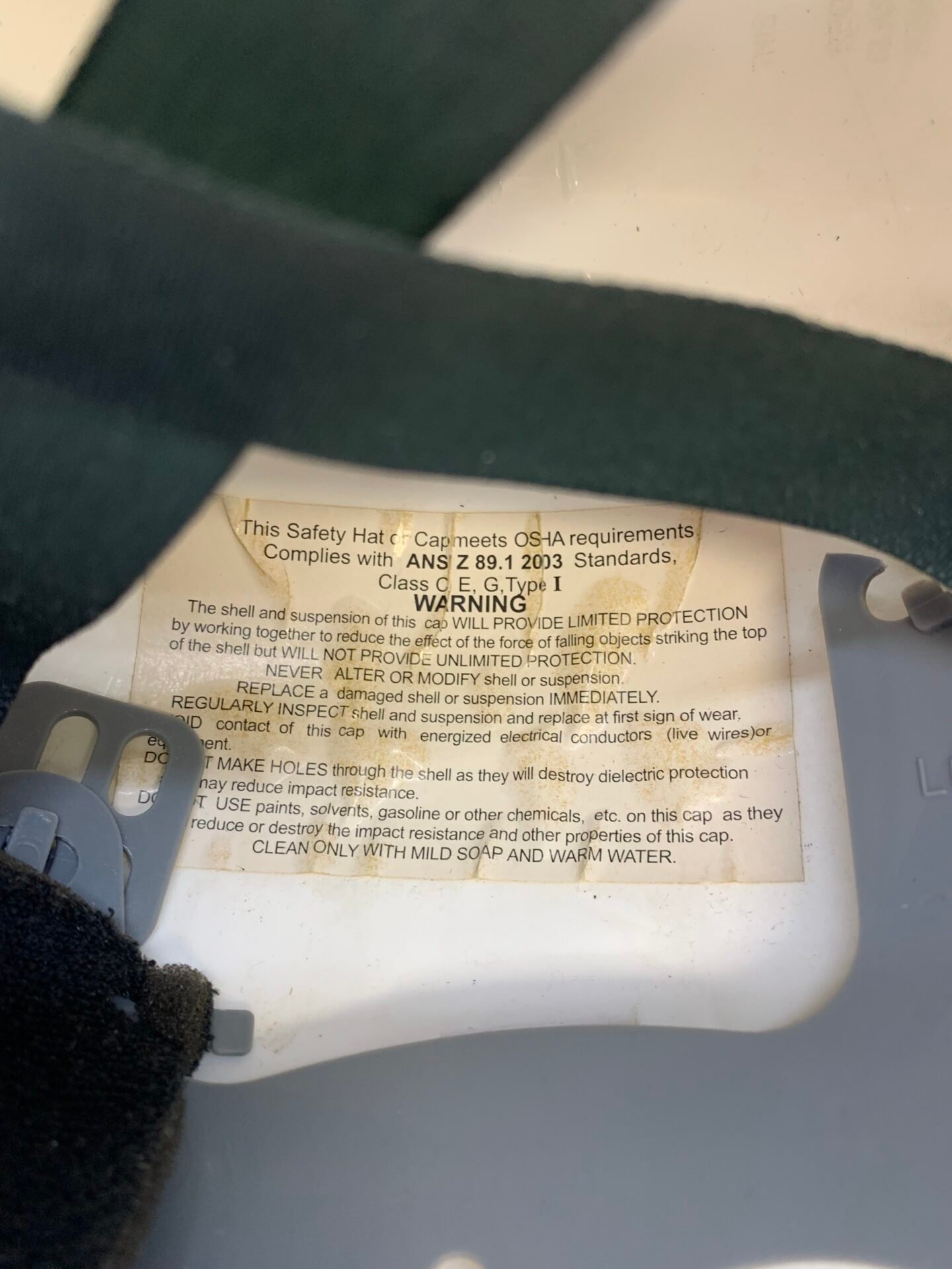 This helmet meets ANSI Z89.1-2003 standards and is rated Class C, E, G – Type I.