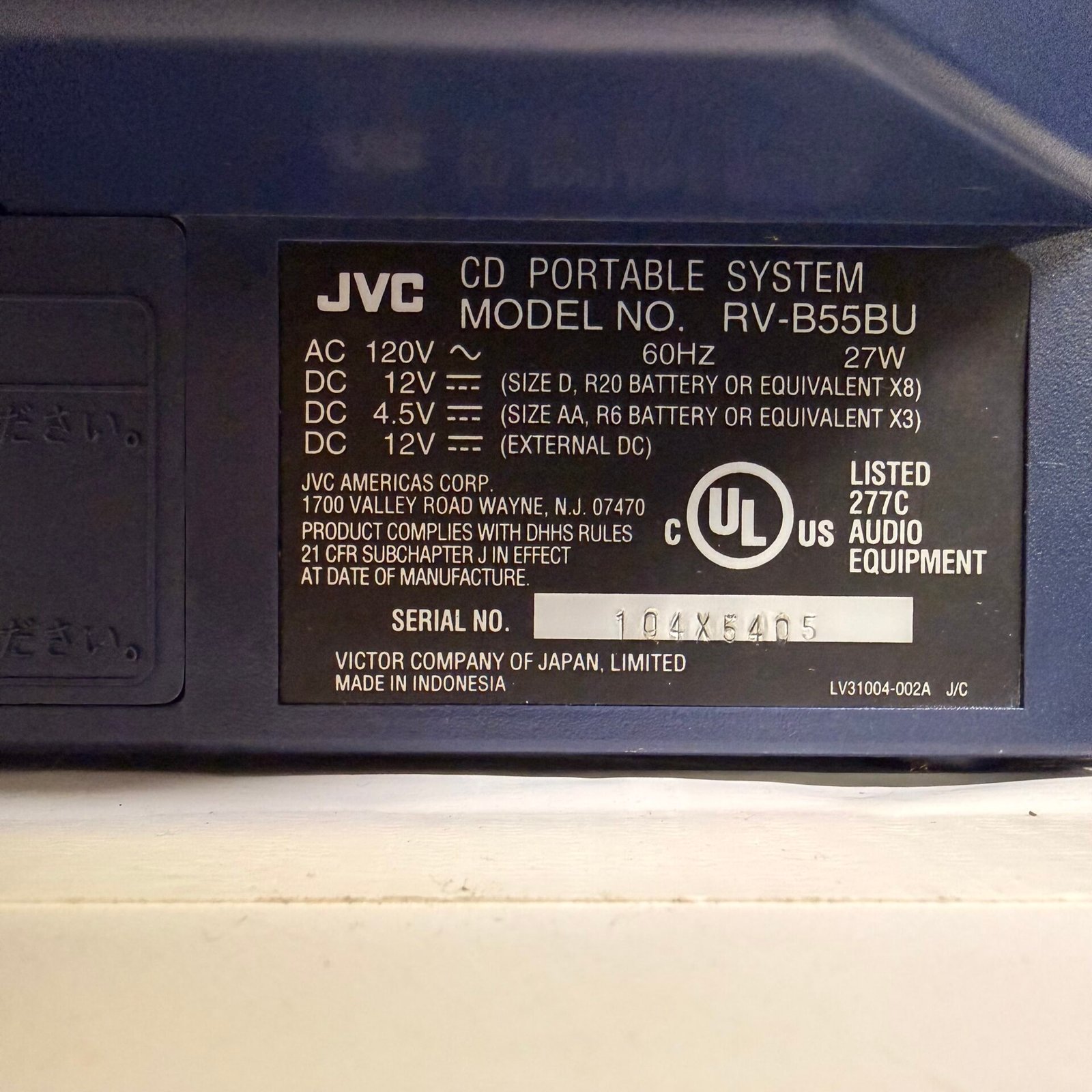 JVC Kaboom RV-B55BU Portable CD Boombox Radio AUX Cassette Not Working