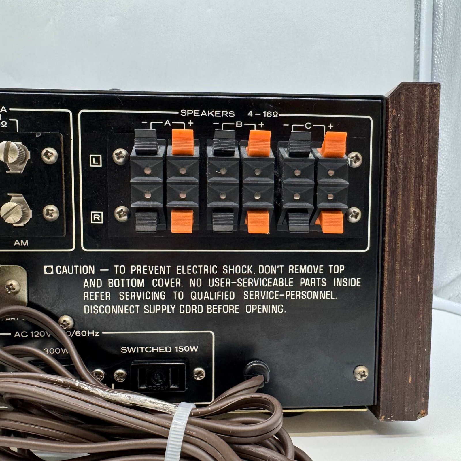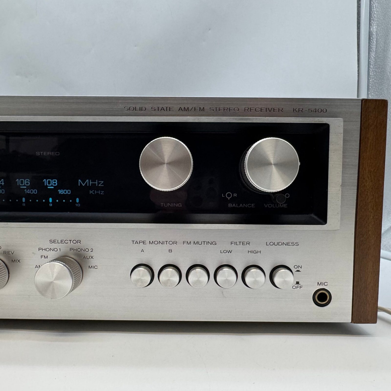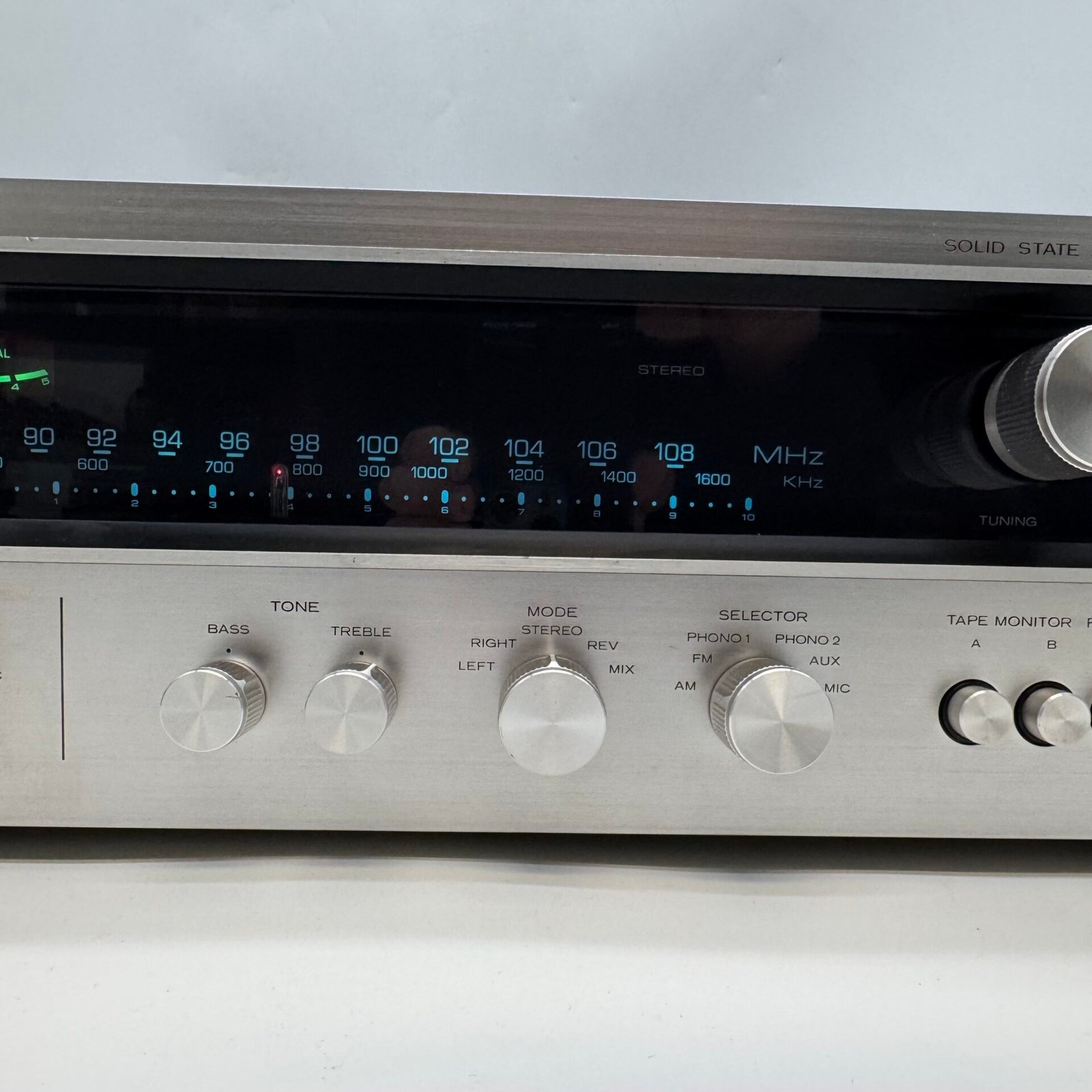 Cosmetically, this receiver is in very nice condition. The front faceplate is clean and well-preserved, and the original wood side panels are beautiful, solid, and add a premium vintage look. The wood cabinet is in great shape and makes this unit stand out in any setup.