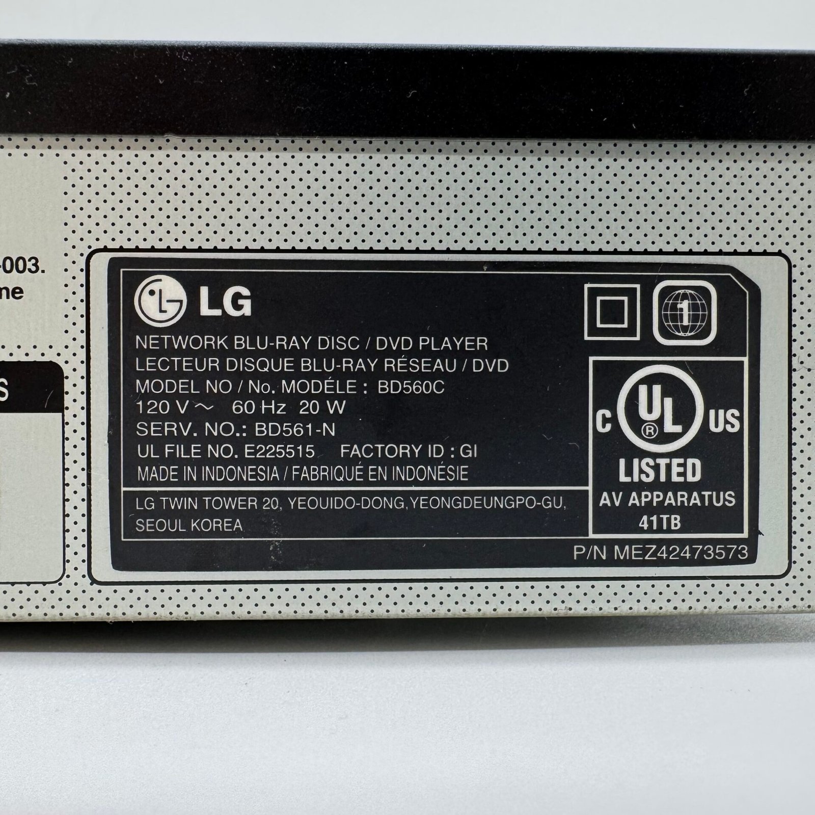 Includes original LG remote control.
