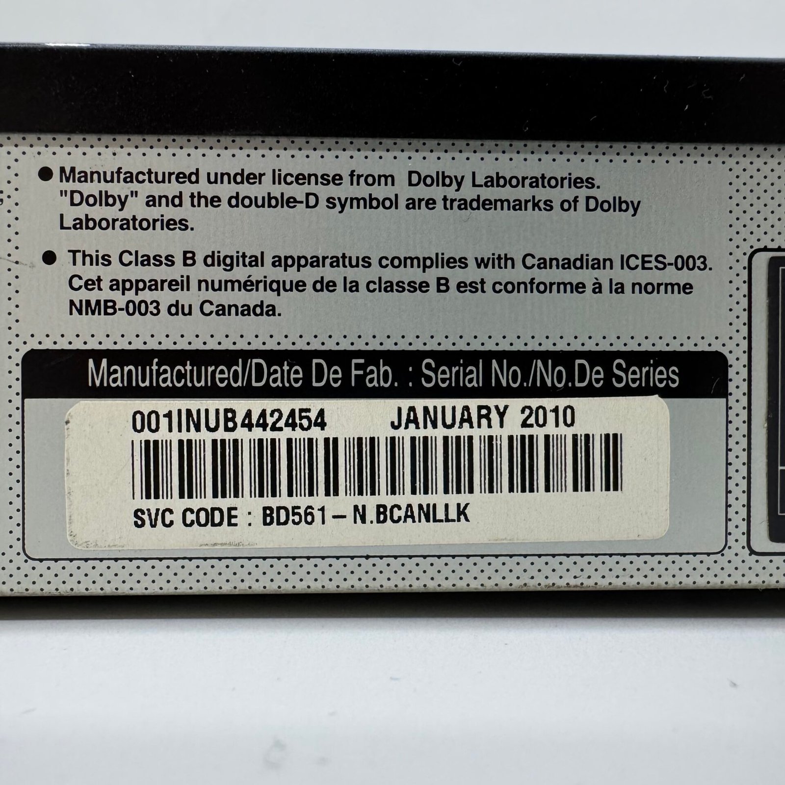 Manufactured: January 2010