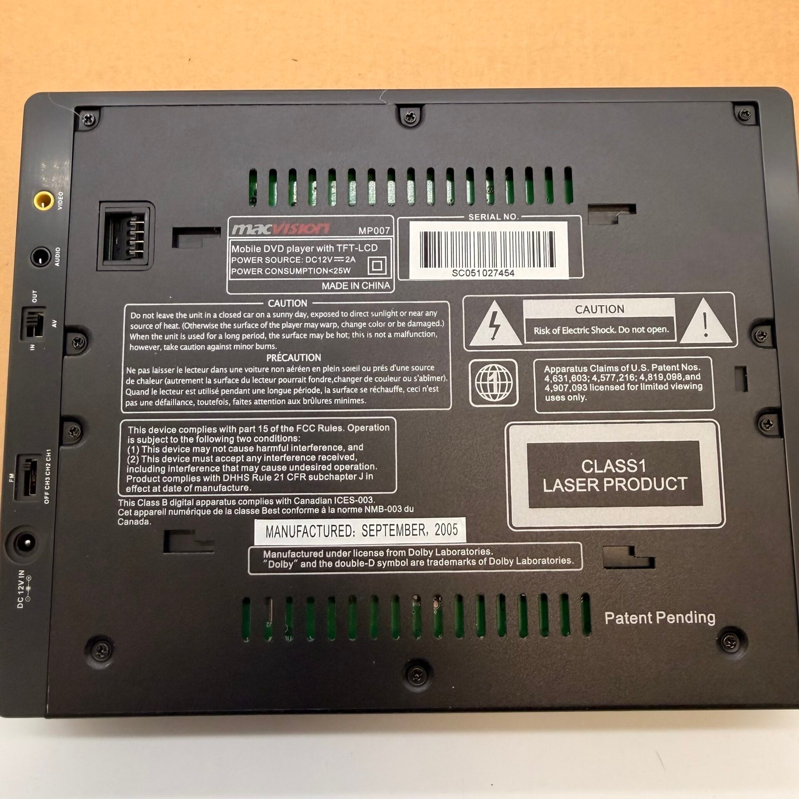 Brand new MacVision MP007 portable DVD player with 7” TFT display.