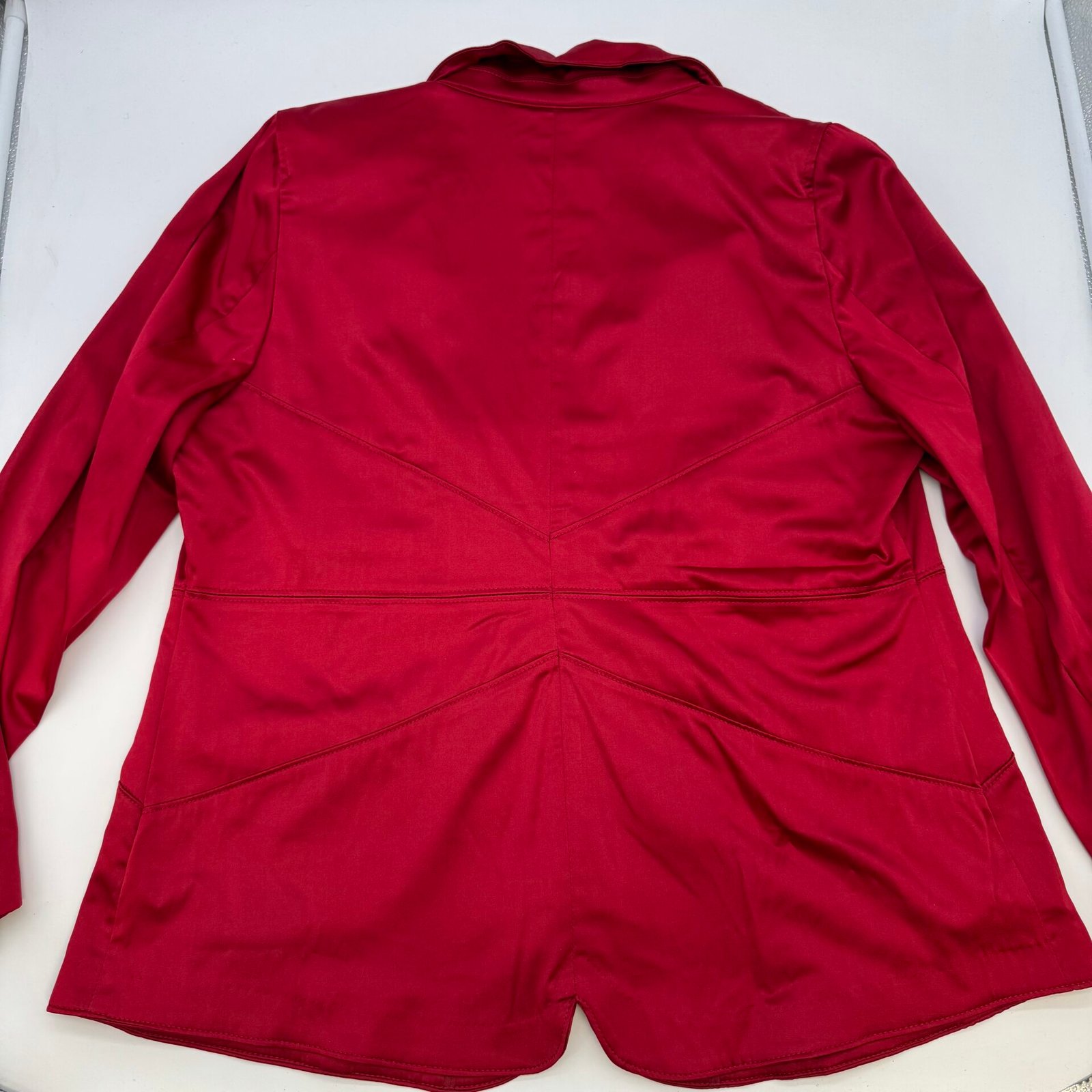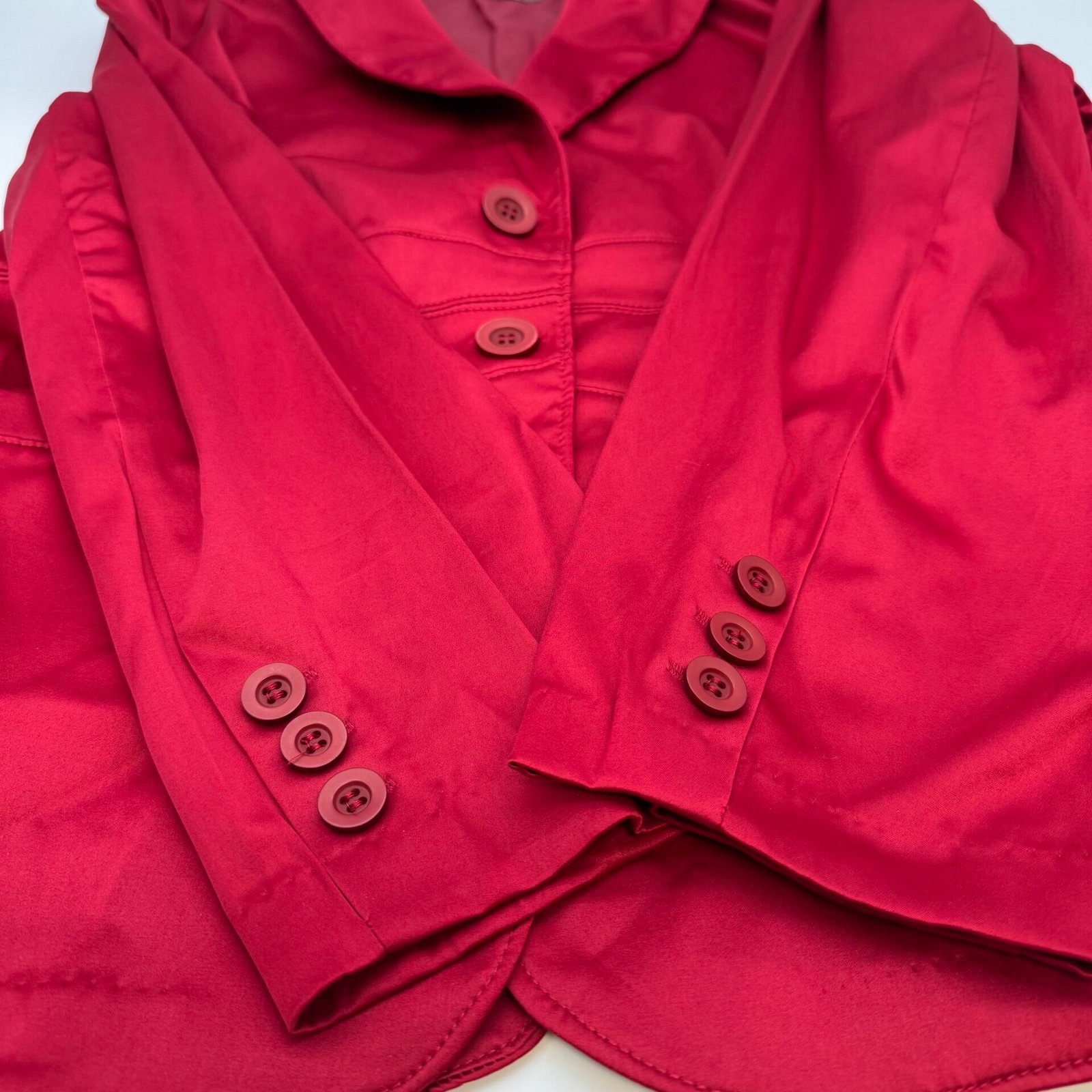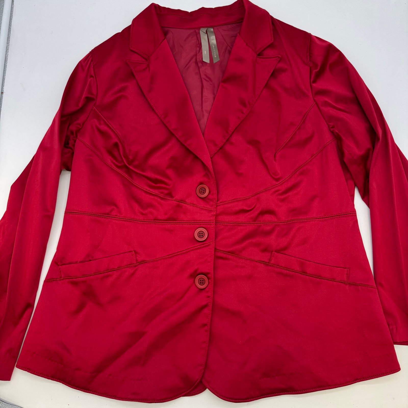 Beautiful Penningtons women’s red blazer in excellent condition. Features a 4-button front closure, stylish seam detailing, faux front pockets, and matching sleeve buttons. Fully lined with a comfortable stretch blend.