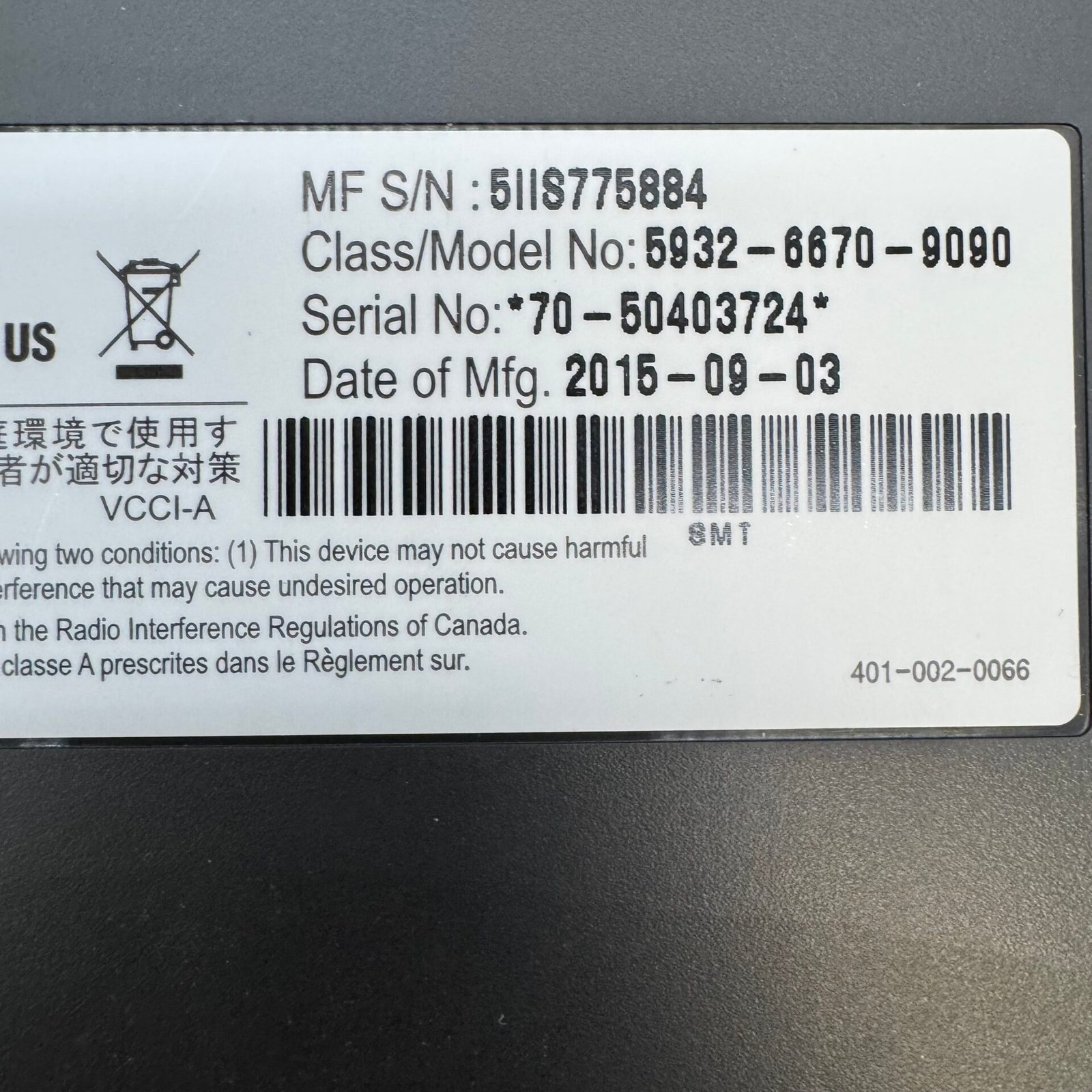 Originally manufactured on September 3, 2015.