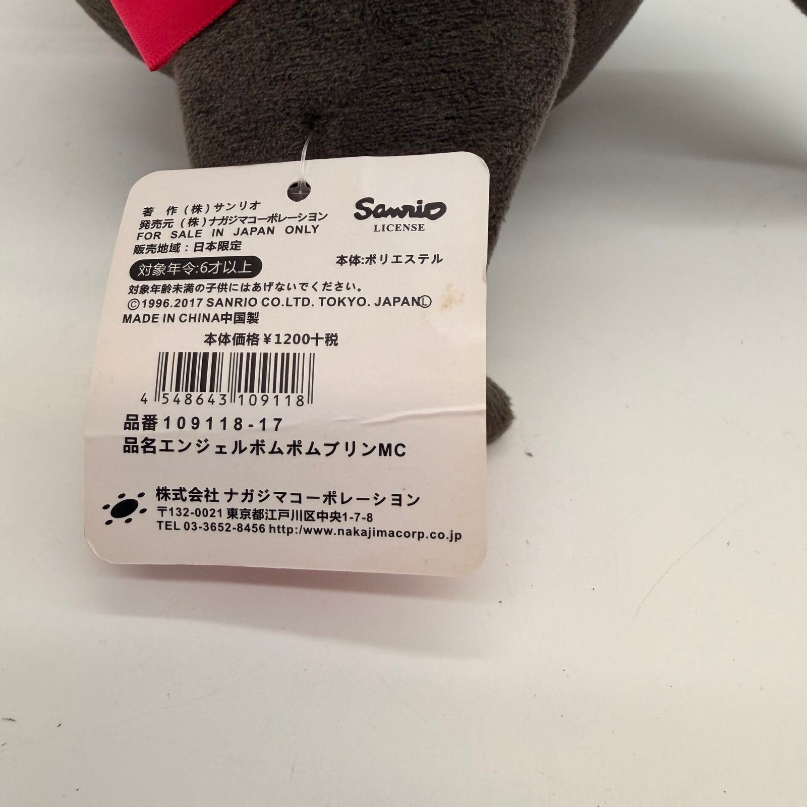 * Tag shows ©1996, 2017 Sanrio