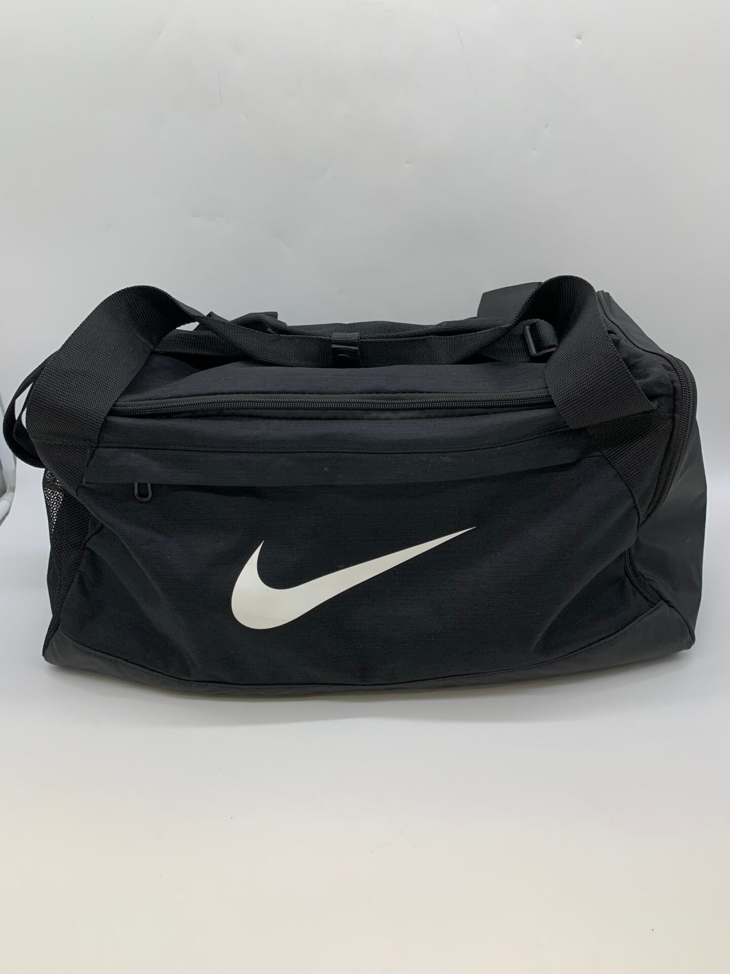 Genuine Nike black gym duffel bag with large swoosh logo.