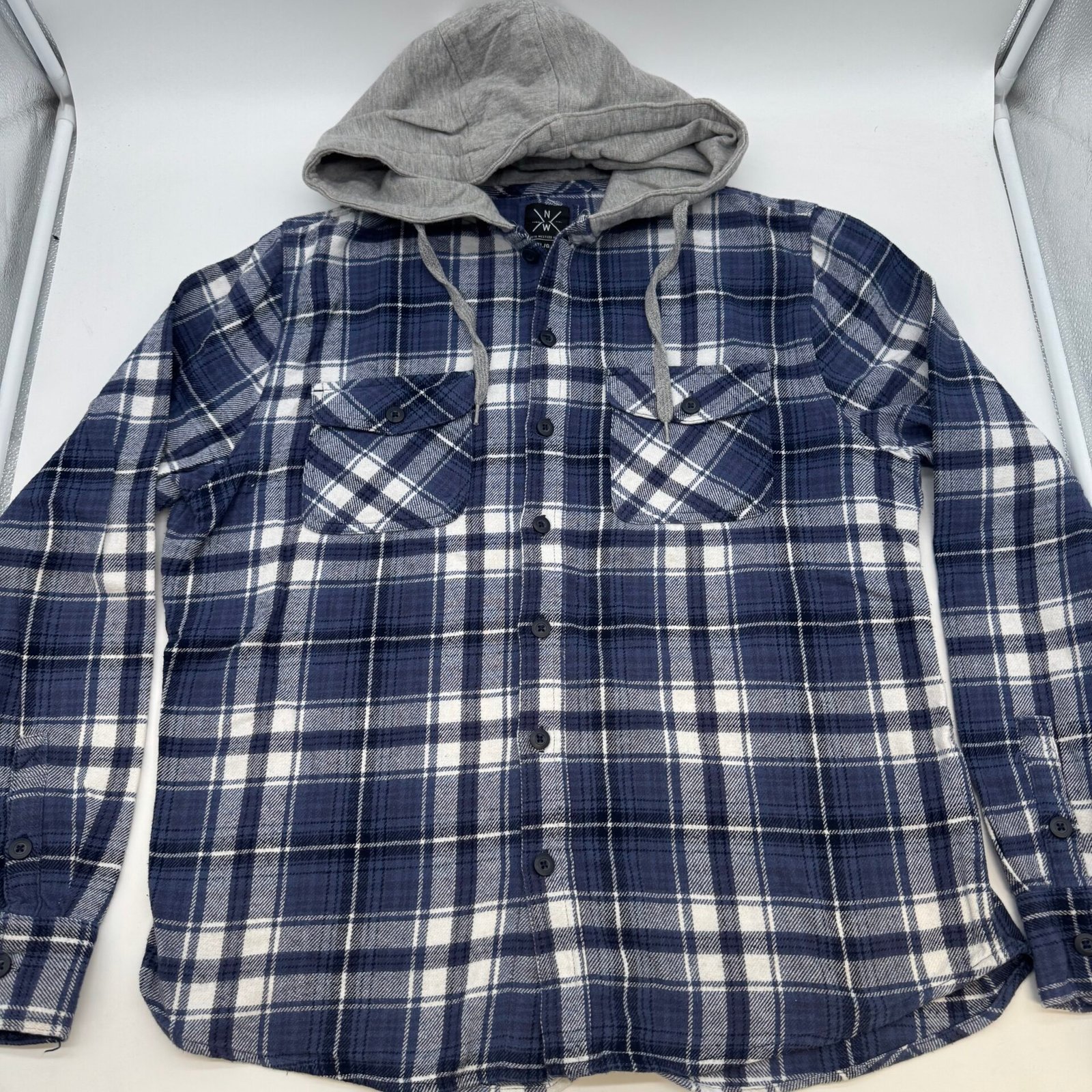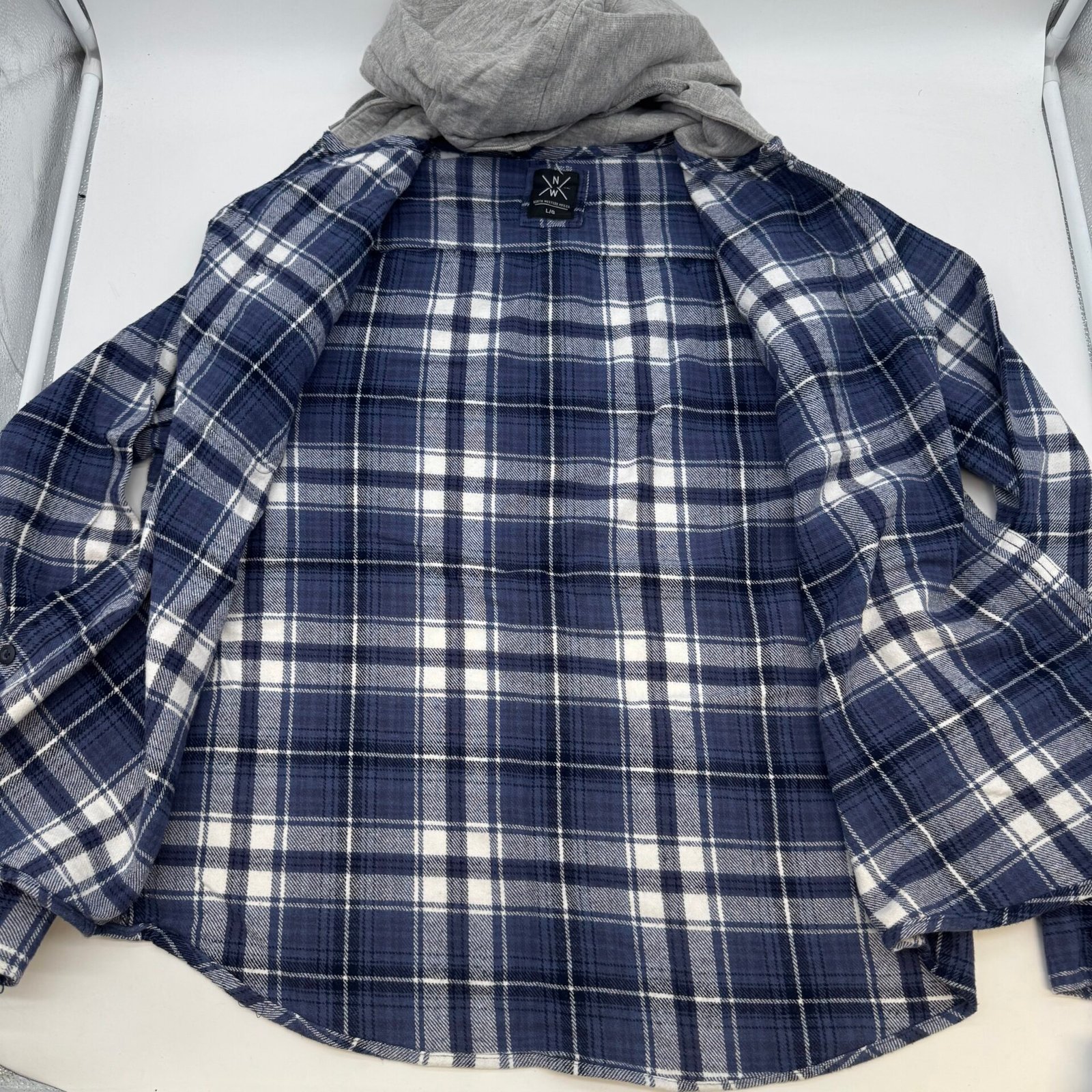NW North Western Plaid Hooded Flannel Shirt Men’s Large Like new