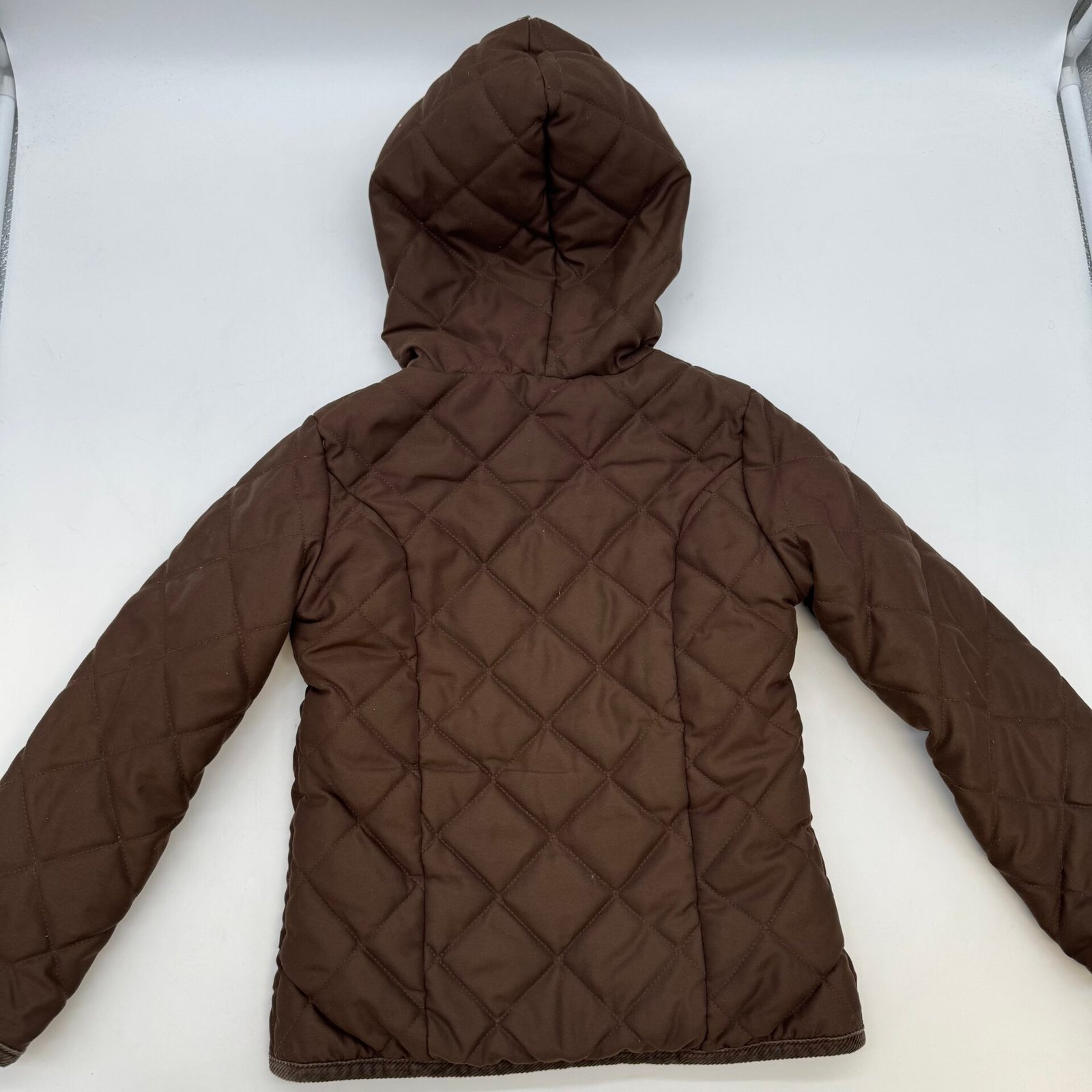 Old Navy Girls Brown Quilted Hooded Jacket Polka Dot Lining Size XS (5)