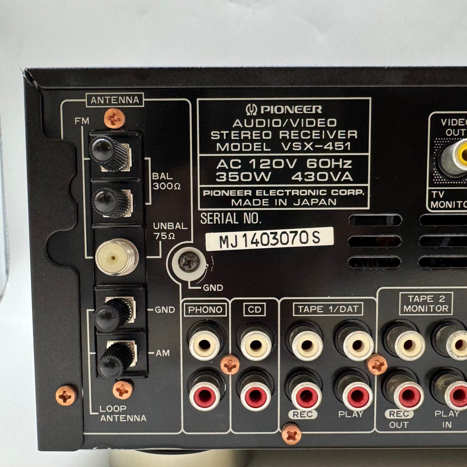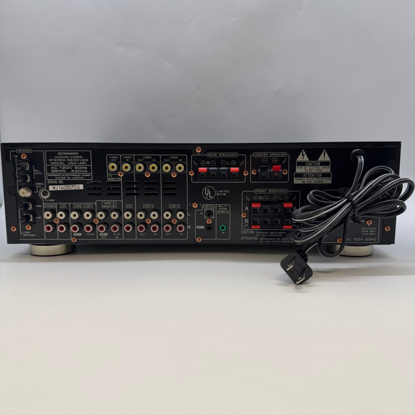 Vintage 1990s Pioneer VSX-451 Audio/Video Stereo Receiver in very good working condition.