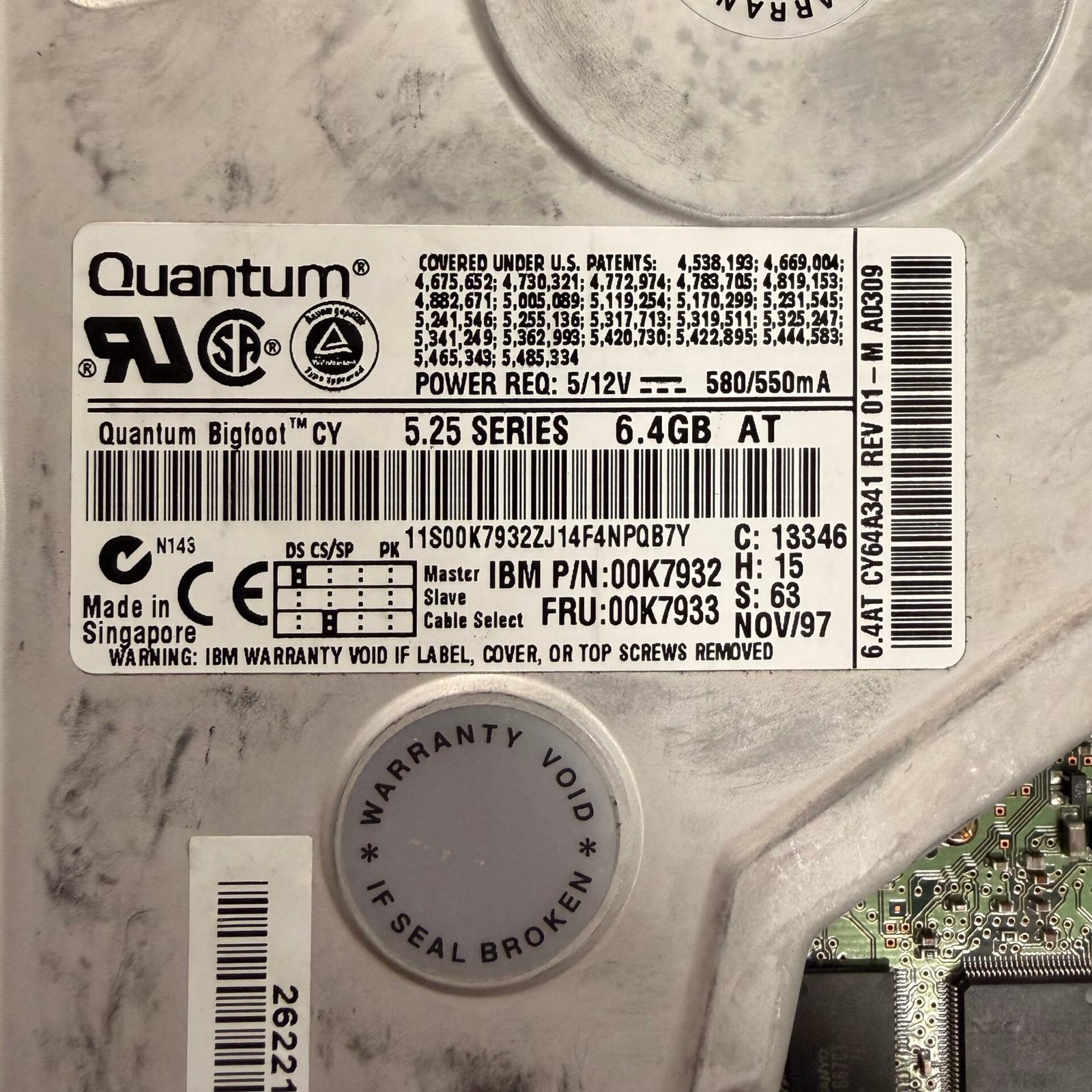 Quantum Bigfoot CY 6.4GB 5.25” IDE PATA Vintage Hard Drive IBM OEM