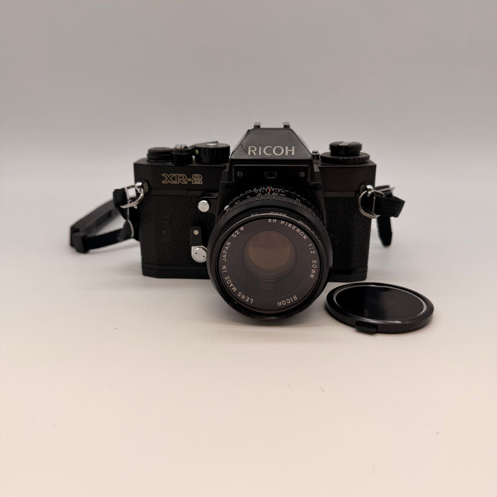 Vintage Ricoh XR-2 35mm SLR film camera paired with XR Rikenon 50mm f/2 lens.