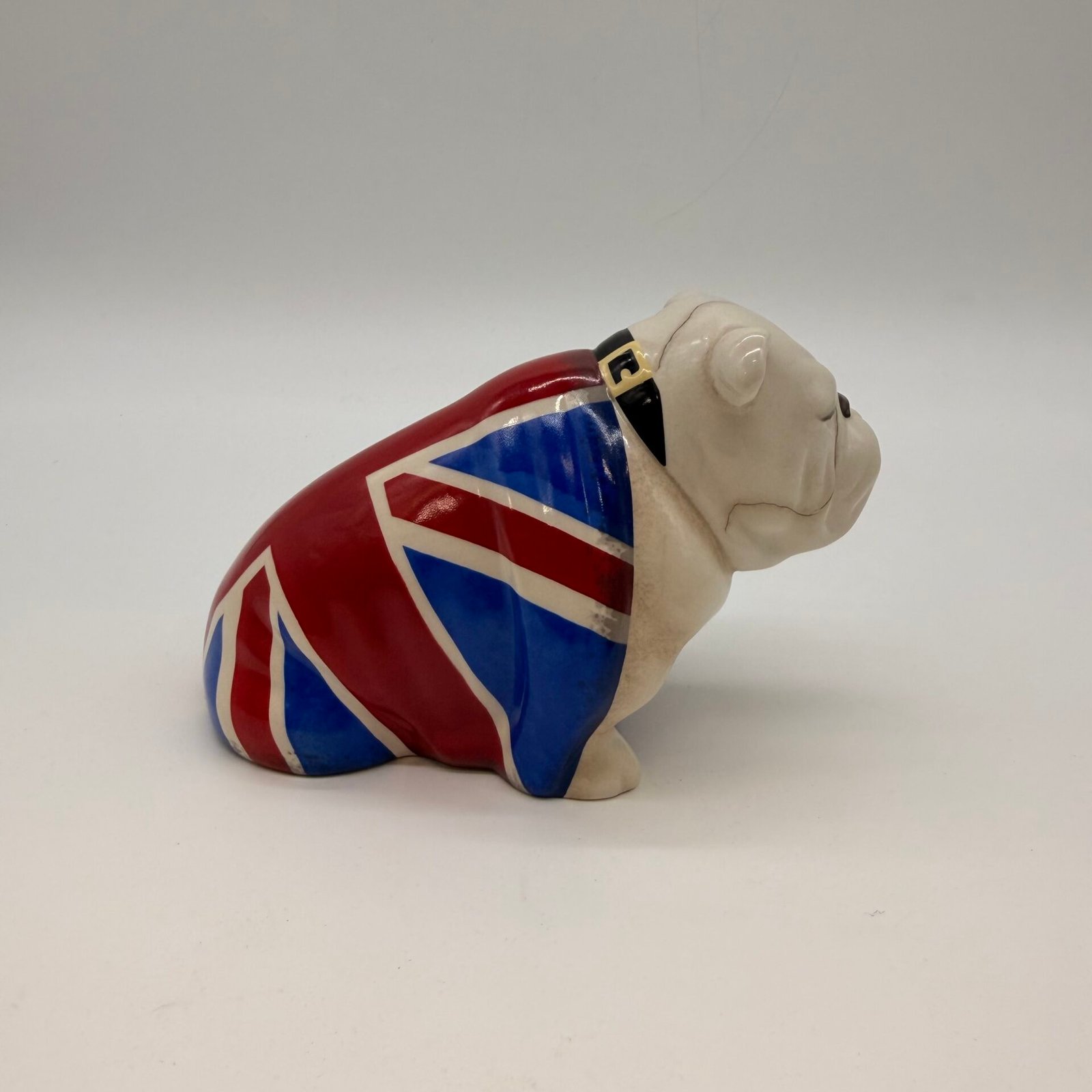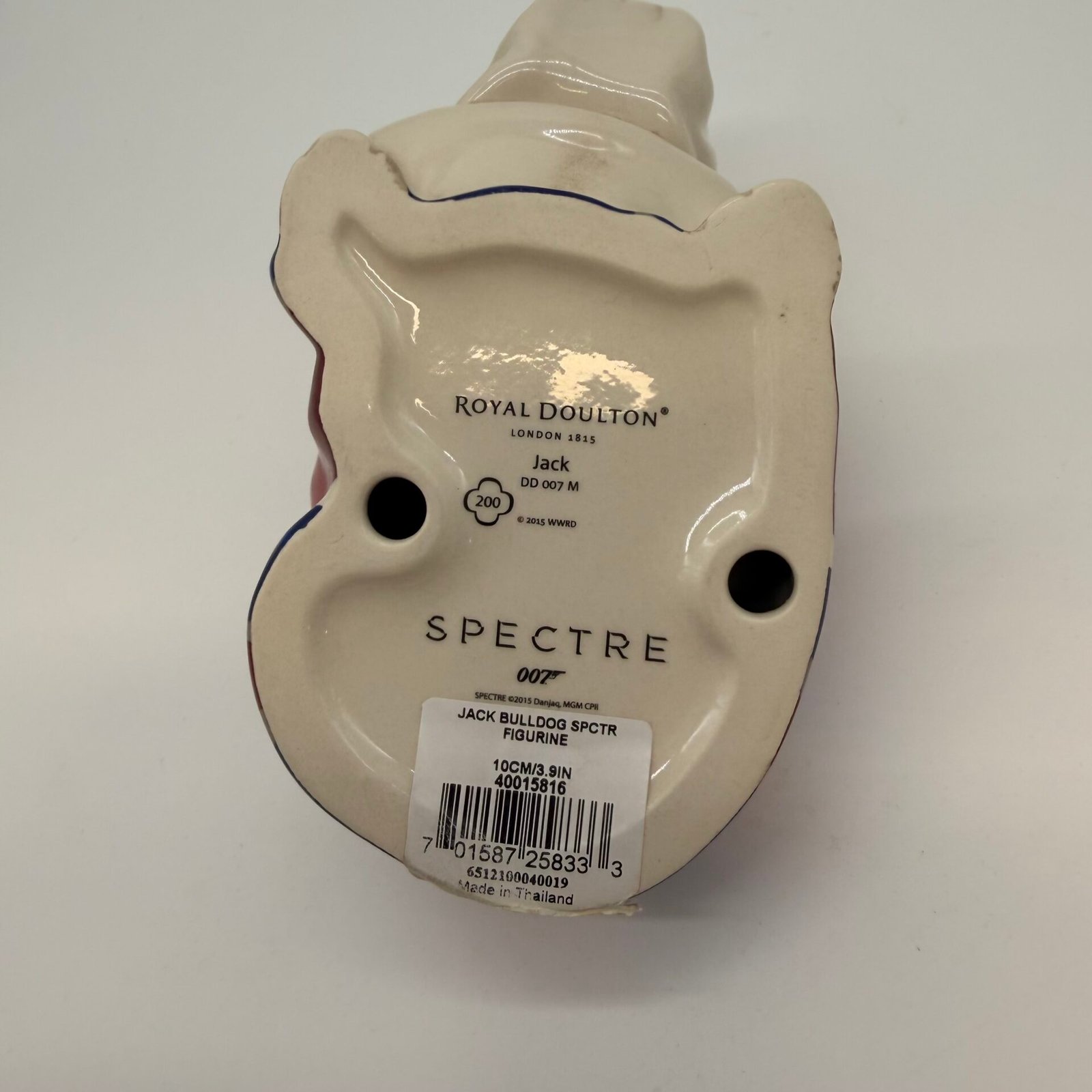 This collectible bulldog features the iconic Union Jack design and was produced in 2015 as part of the official James Bond Spectre merchandise line.