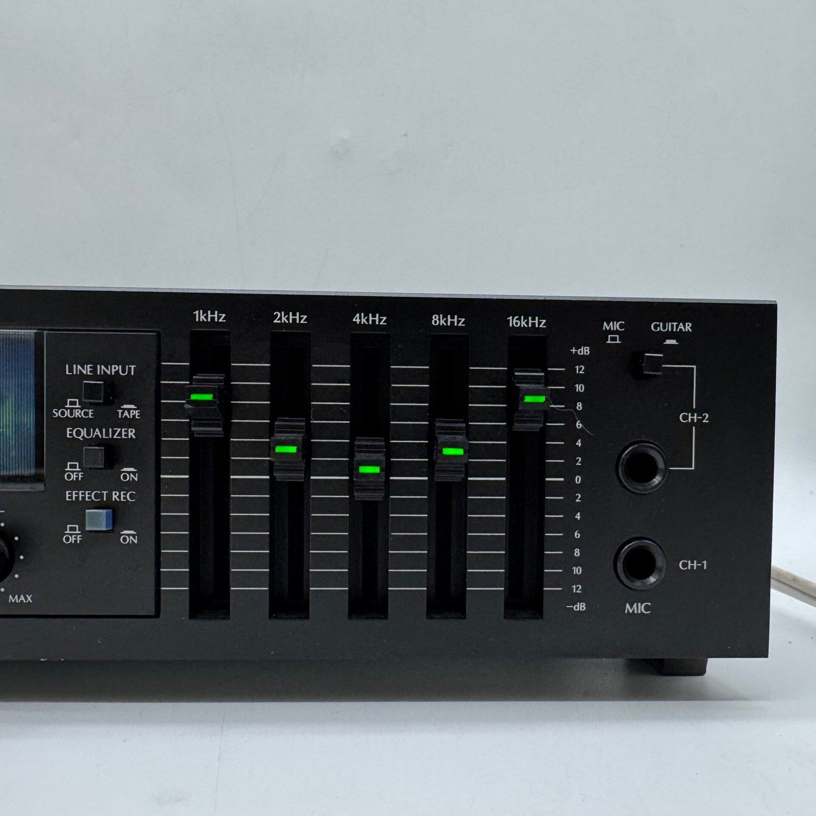 Features multiple frequency bands for precise audio adjustment, along with microphone and guitar inputs, making it a versatile unit for both home audio and studio use.
