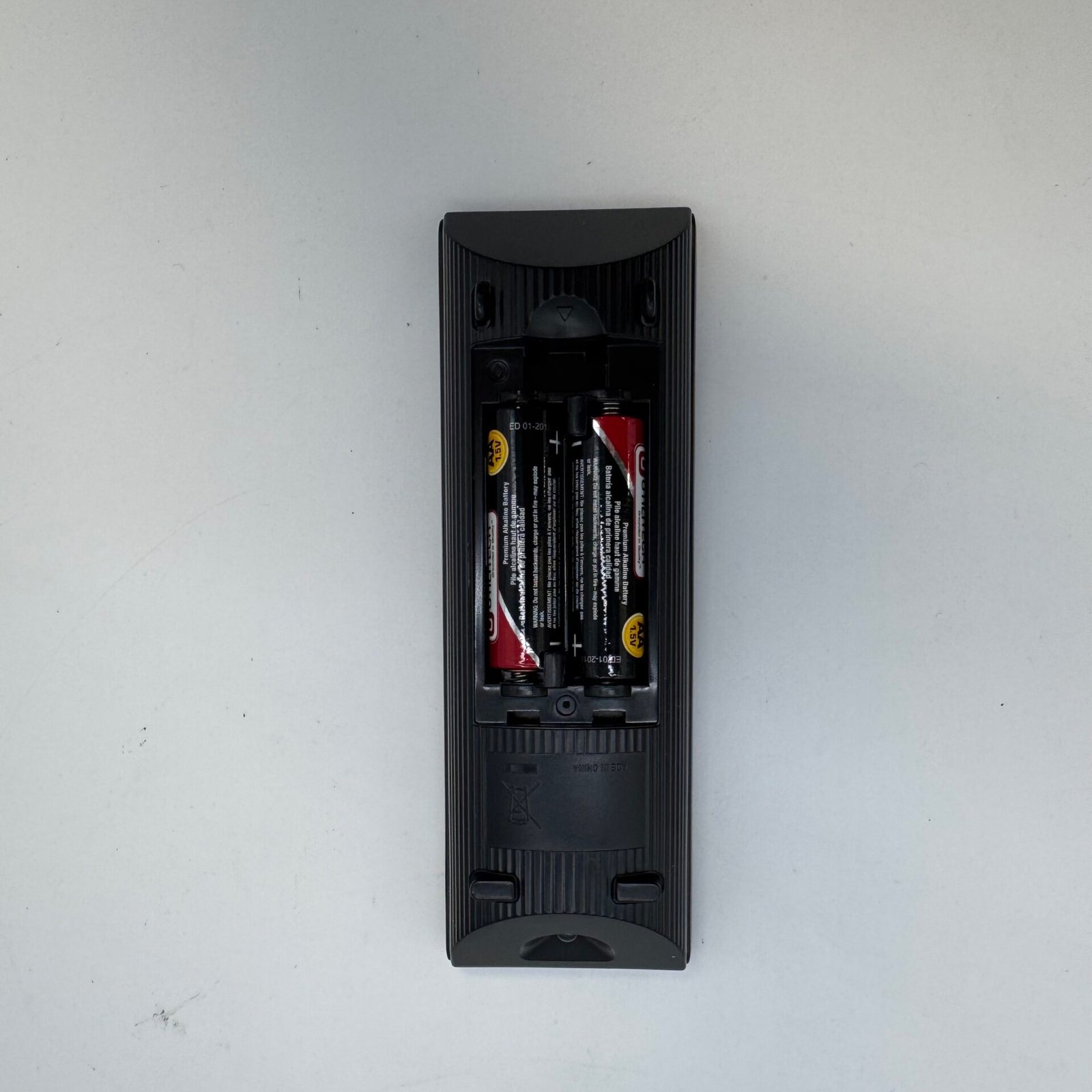 The battery cover on the back of the remote control is missing, but the remote works properly.