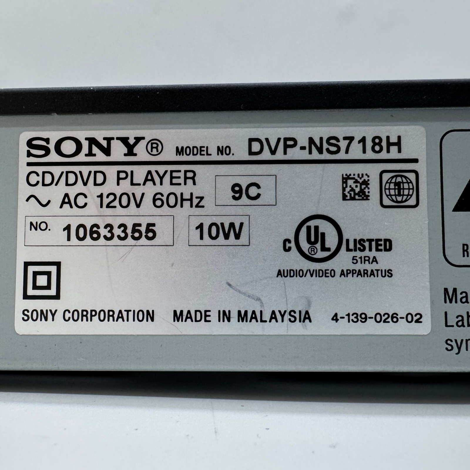 Used Sony DVP-NS718H CD/DVD Player in good condition.