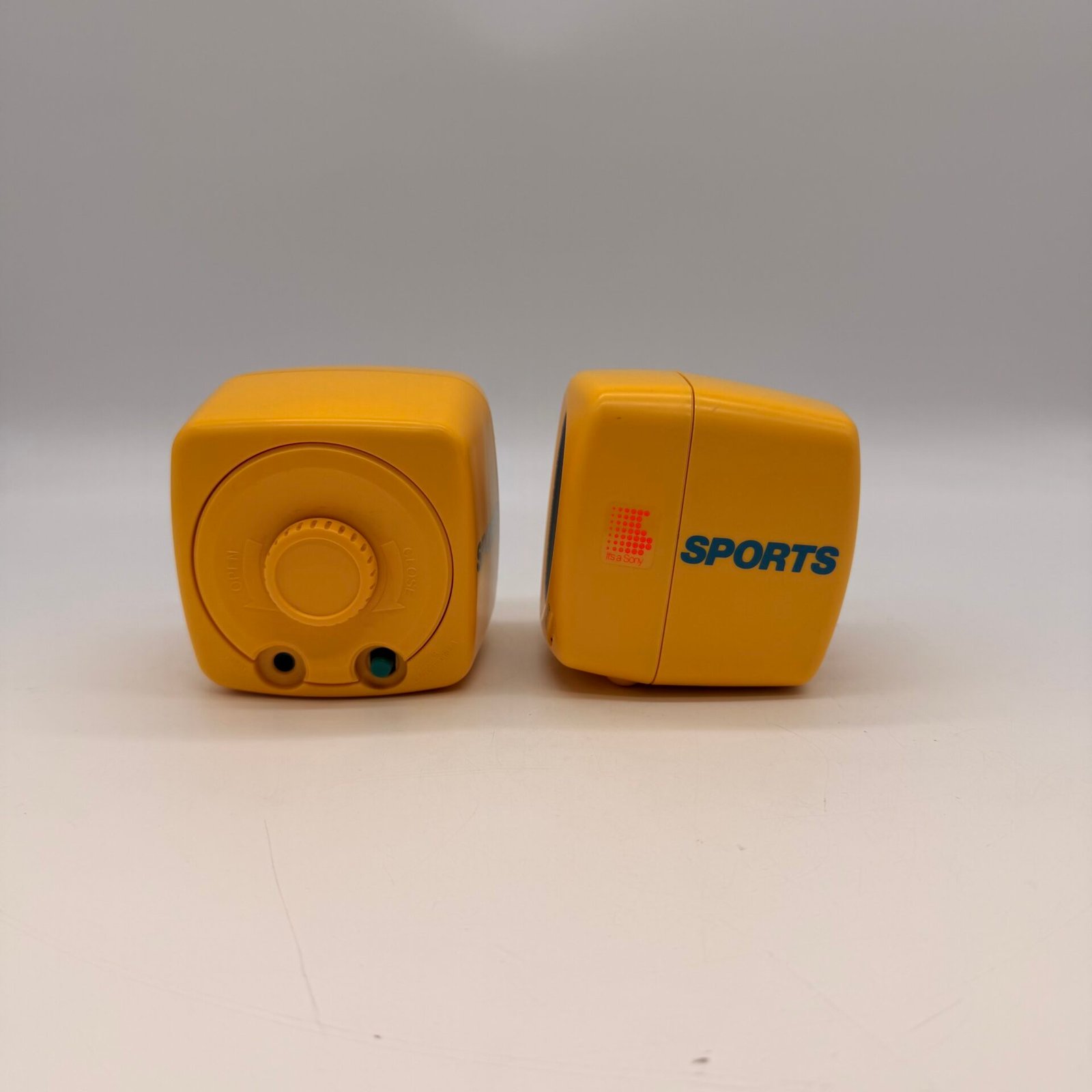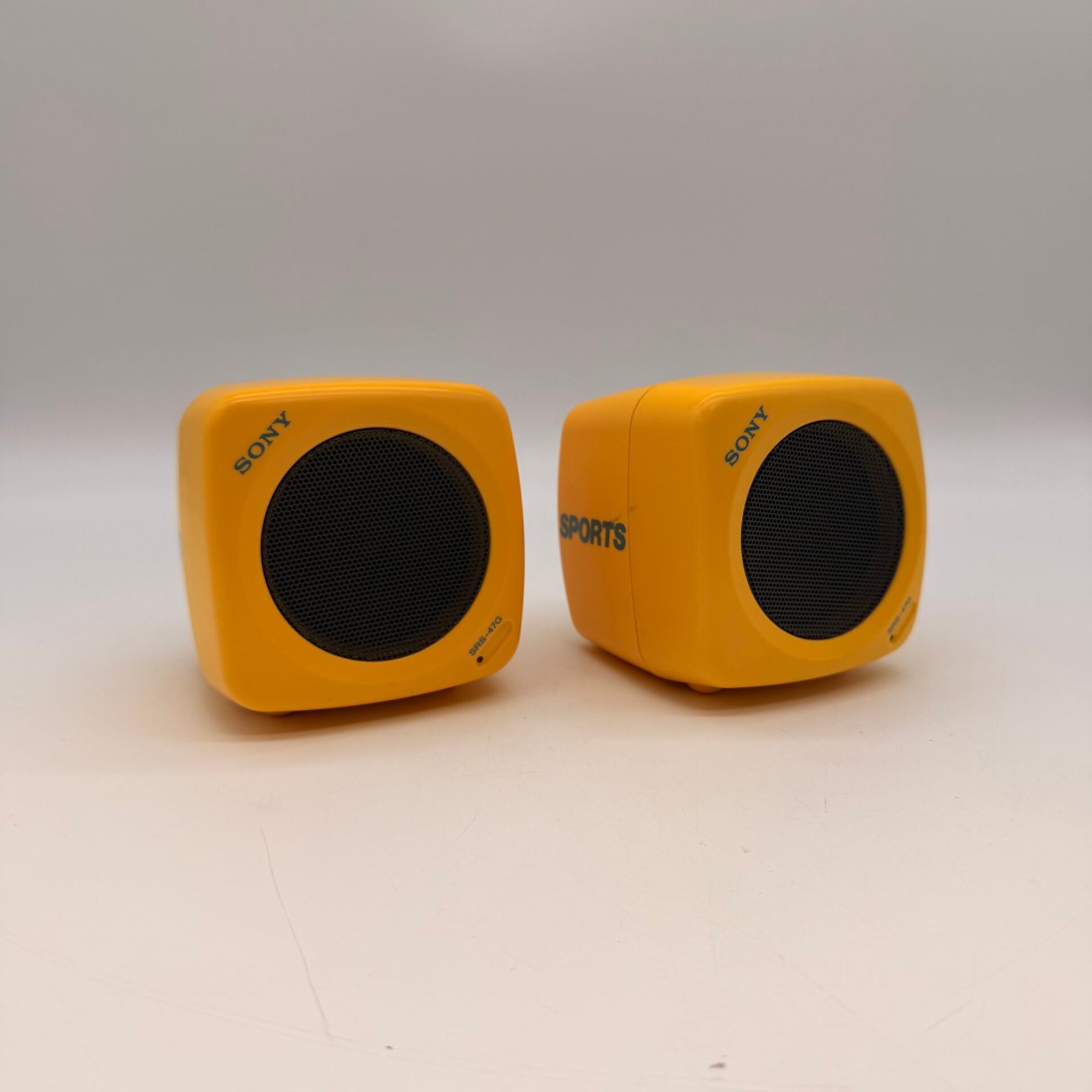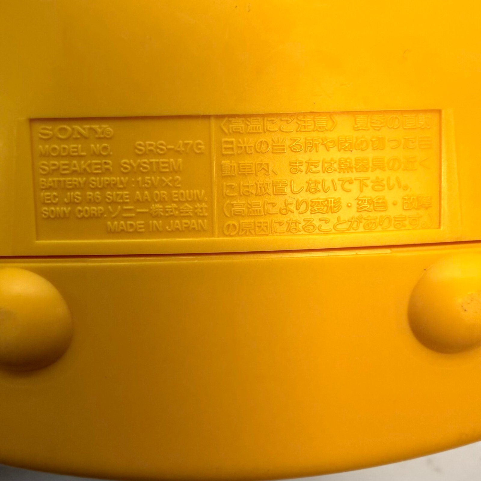 Vintage Sony Sports SRS-47G portable mini speaker system in classic yellow finish.