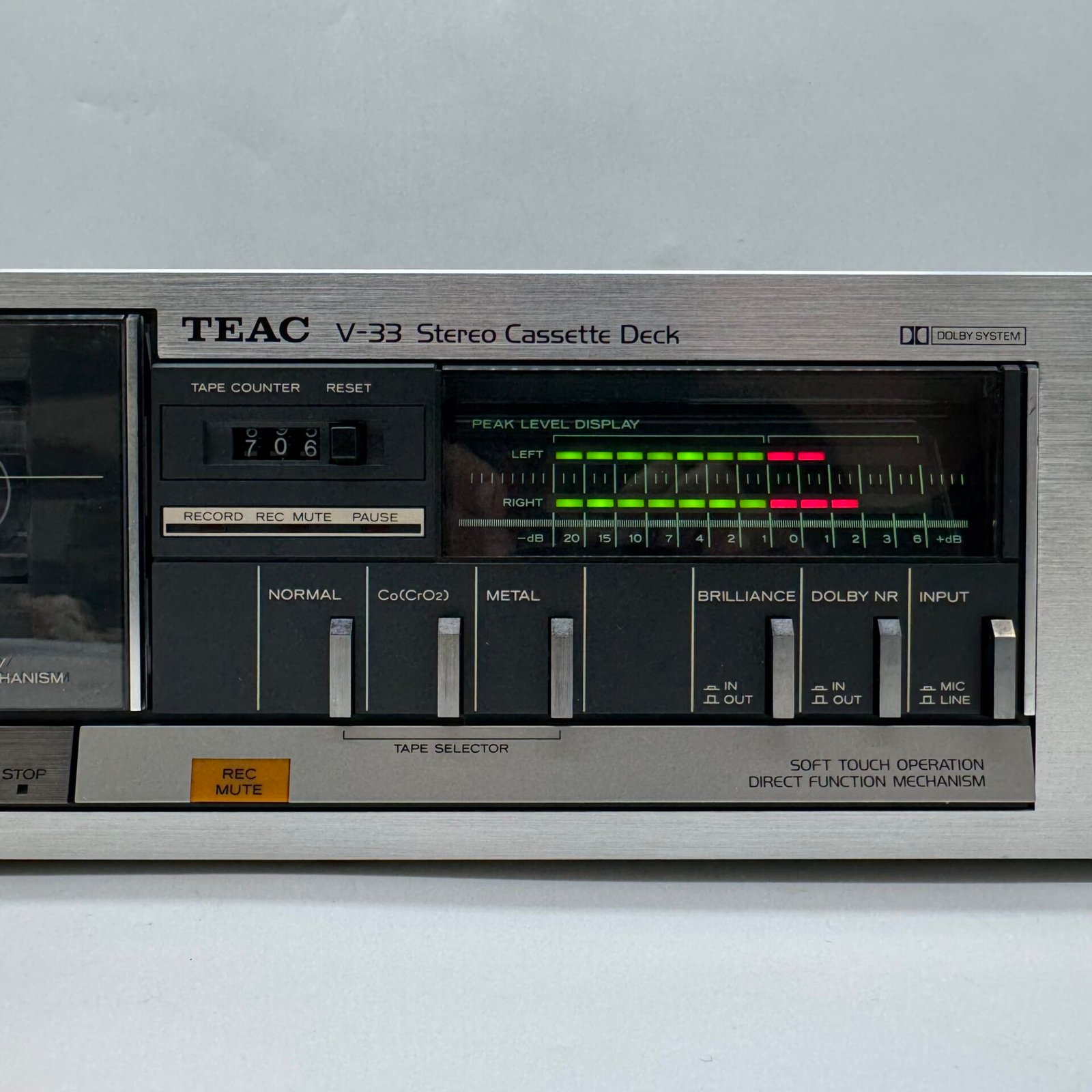 Beautiful classic silver face design with analog peak level display and Dolby noise reduction system.