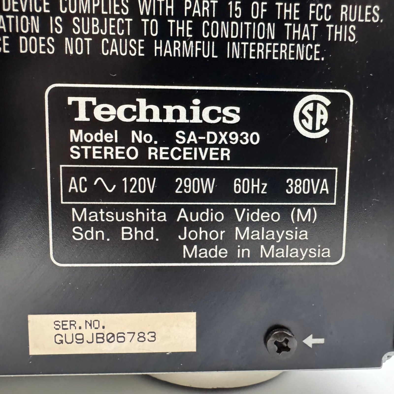 Technics SA-DX930 AV Control Stereo Receiver Black No Remote TESTED WORKS