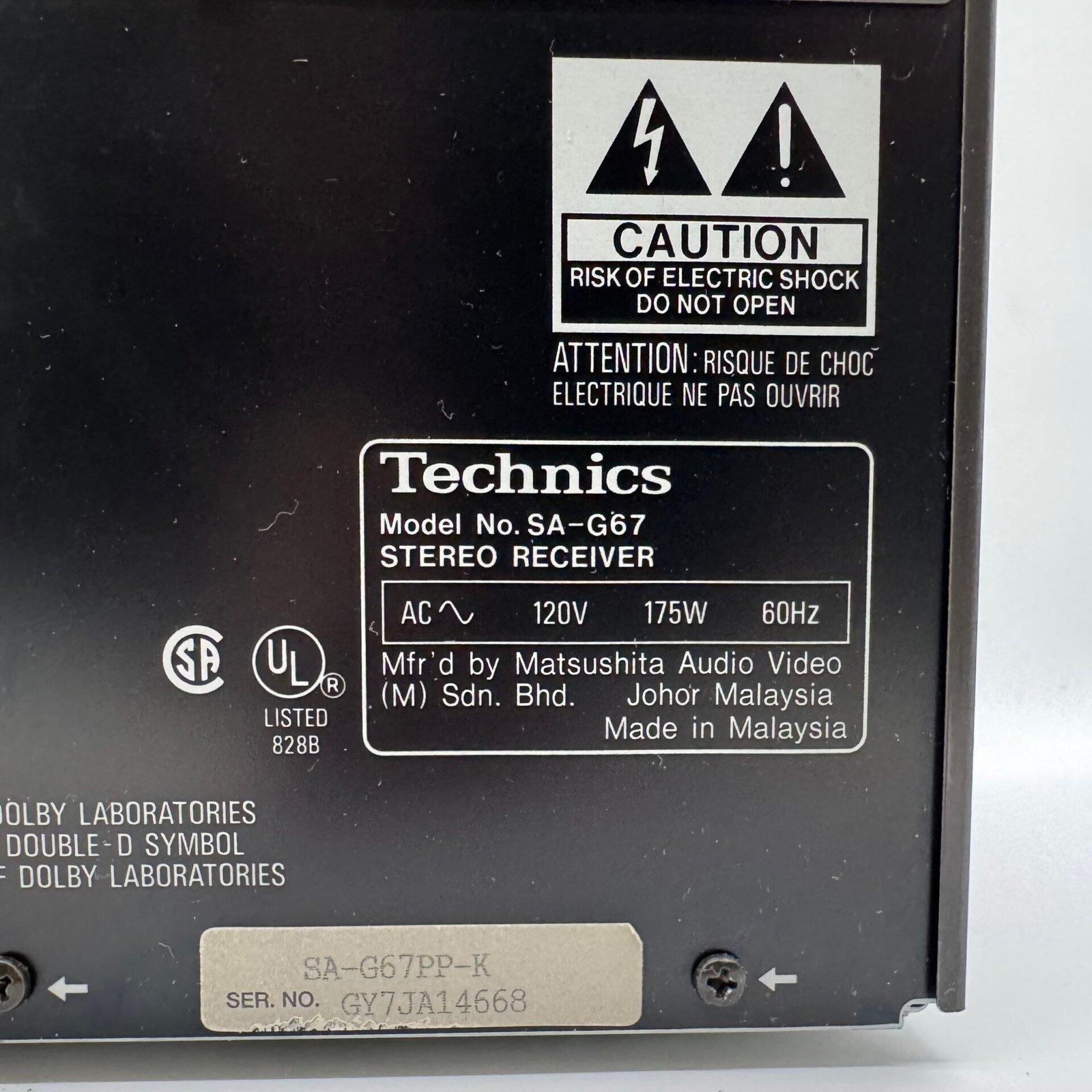 Technics SA-G67 Stereo Receiver Tested Working Dolby Pro Logic
