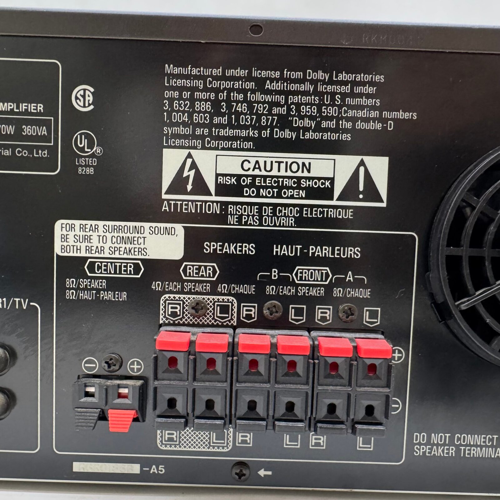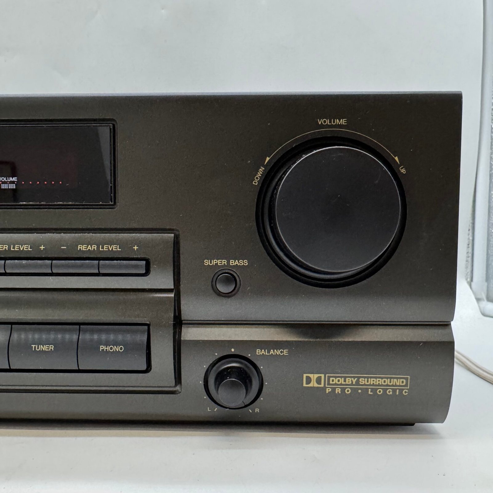 Features Dolby Pro Logic surround, multiple inputs including CD, Tuner, Phono, Tape/DCC, and VCR.