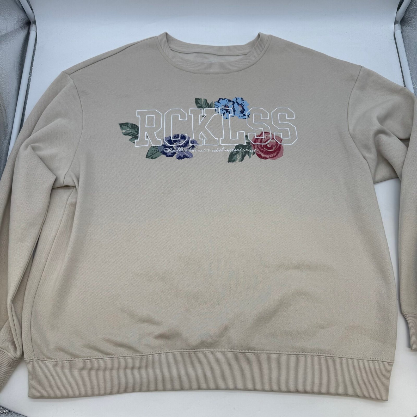 Be the first to review “Urban Man XL Beige Crewneck Sweatshirt Floral “Reckless” Like New” Cancel reply