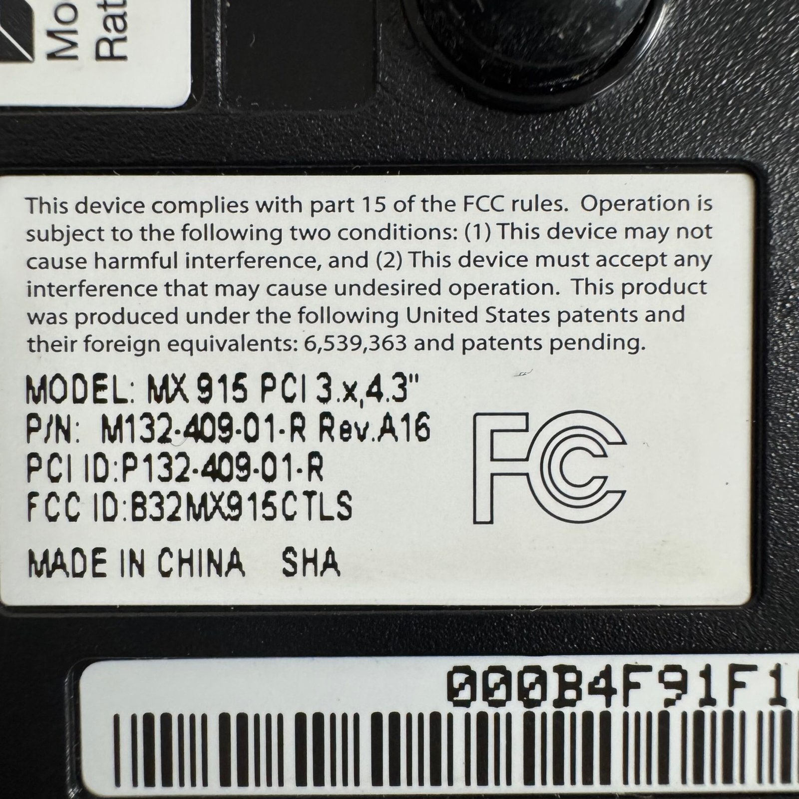 FCC ID: B32MX915CTLS