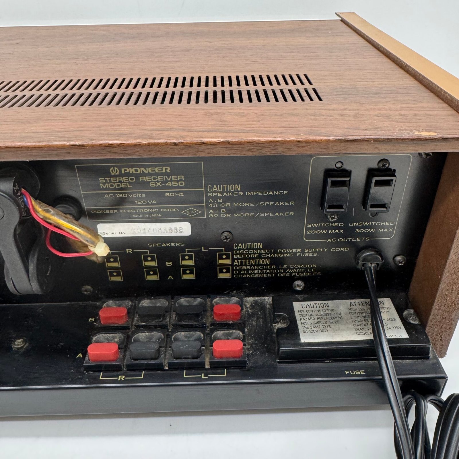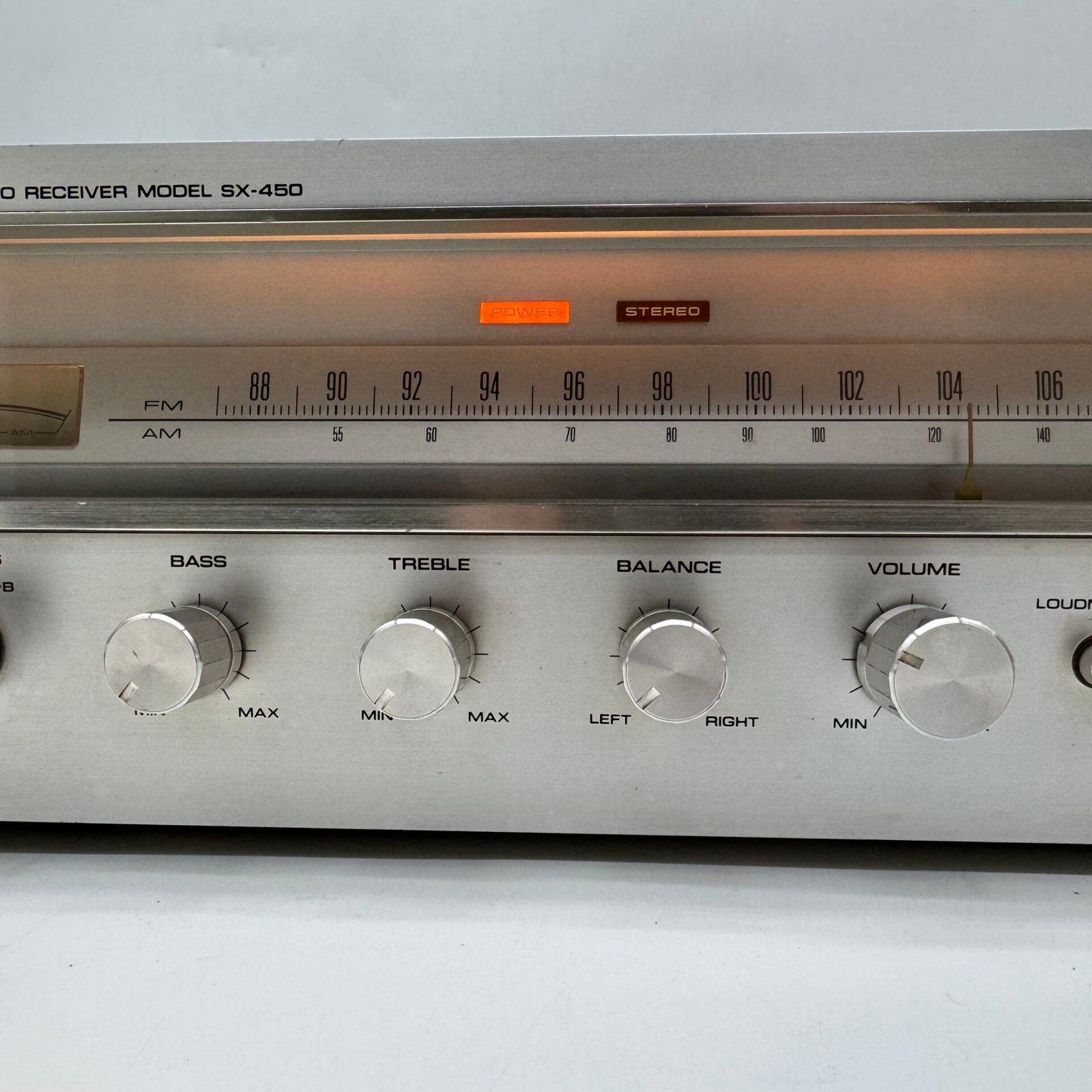 Used vintage Pioneer SX-450 stereo receiver in tested, working condition.