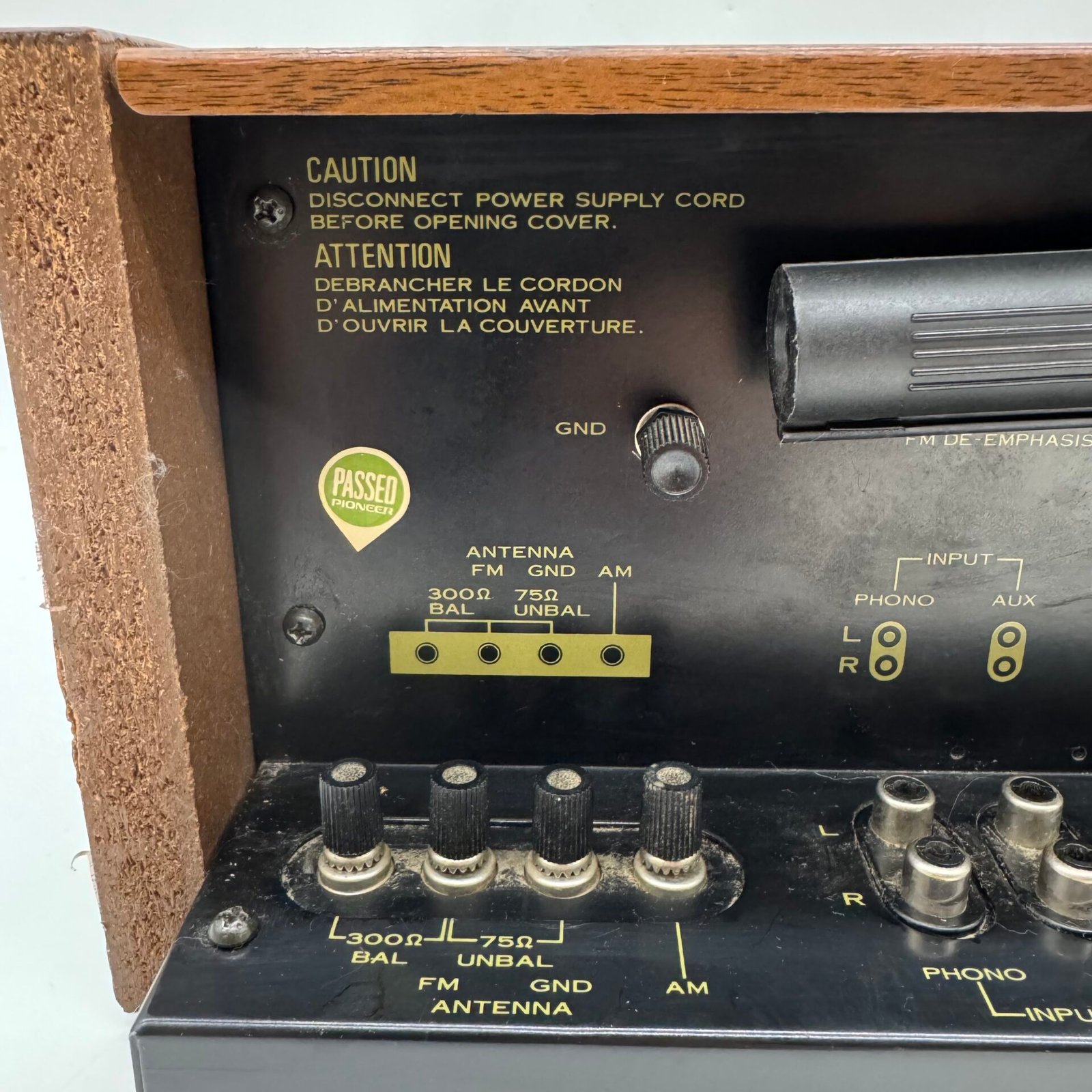 This classic 1970s Pioneer receiver has been fully tested and is working well. Power turns on, stereo indicator lights up, and all main functions operate properly. It has a beautiful silver face with a real woodgrain cabinet, giving it that highly desirable vintage look.